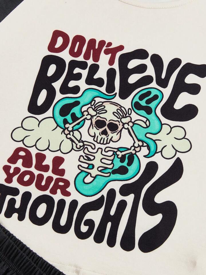 Atosha Set pigiama slogan con grafica cranio bordo a contrasto