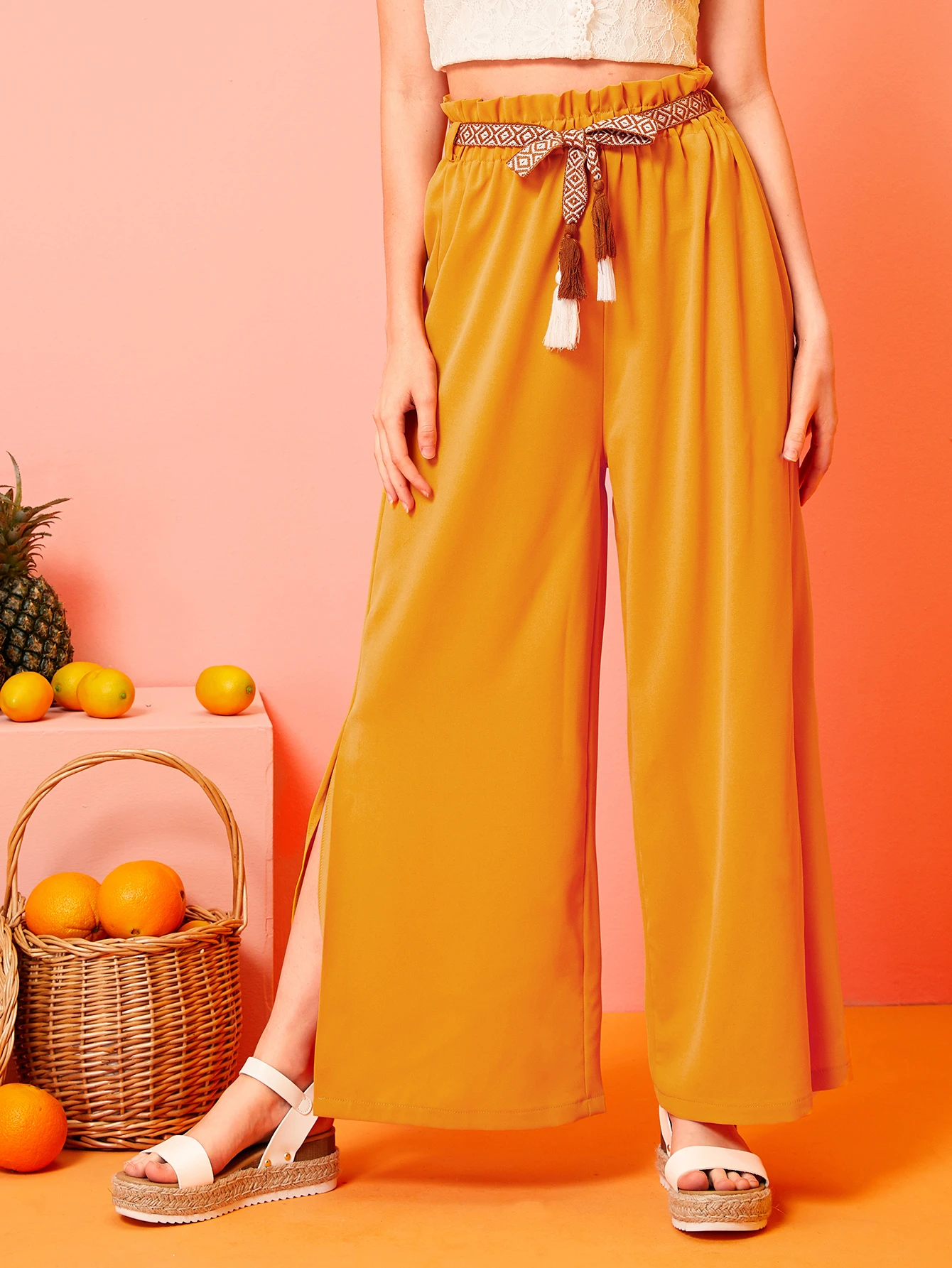 Pantaloni con gamba ampia con cinture e nappa