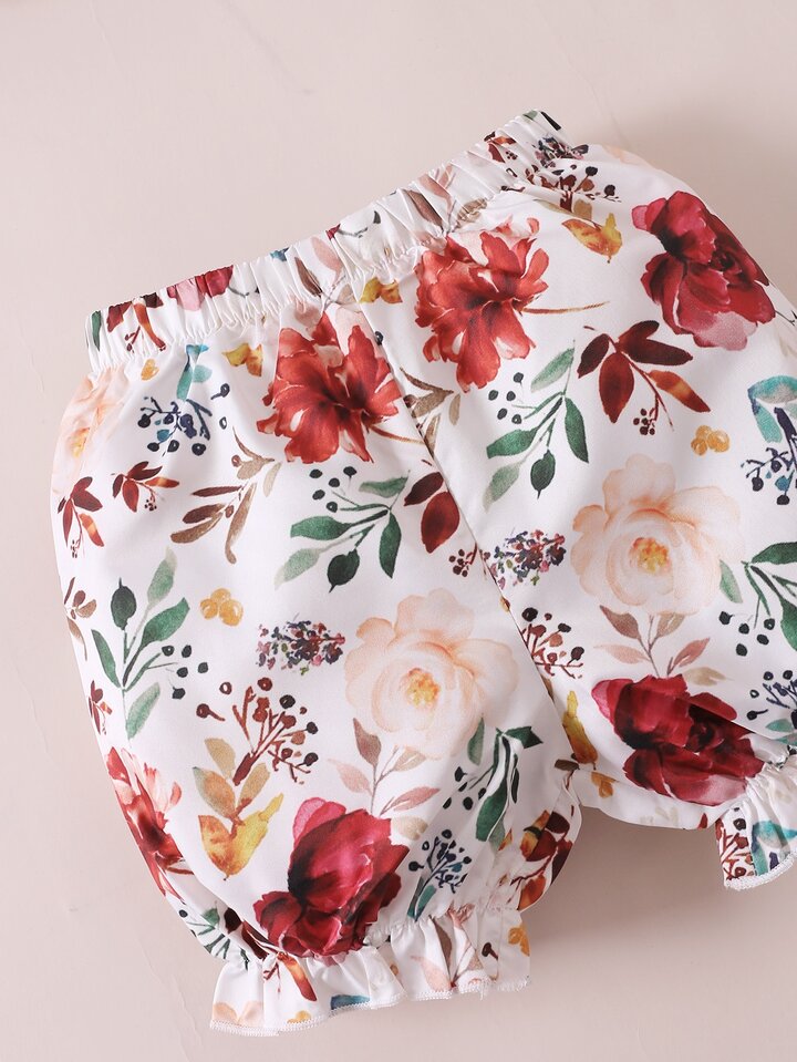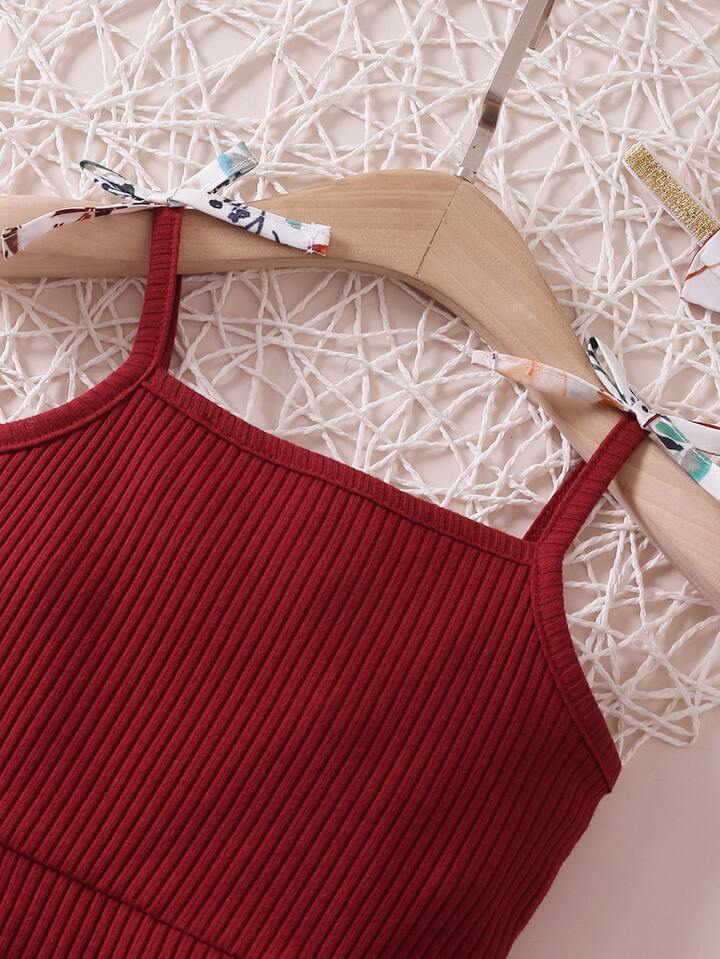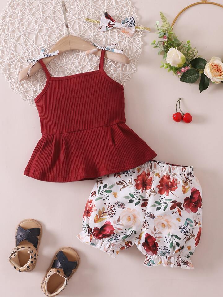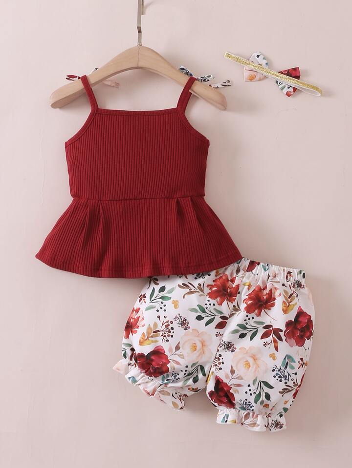Top con bretelle sottile con fiocco frontale e shorts floreali e fascia per capelli