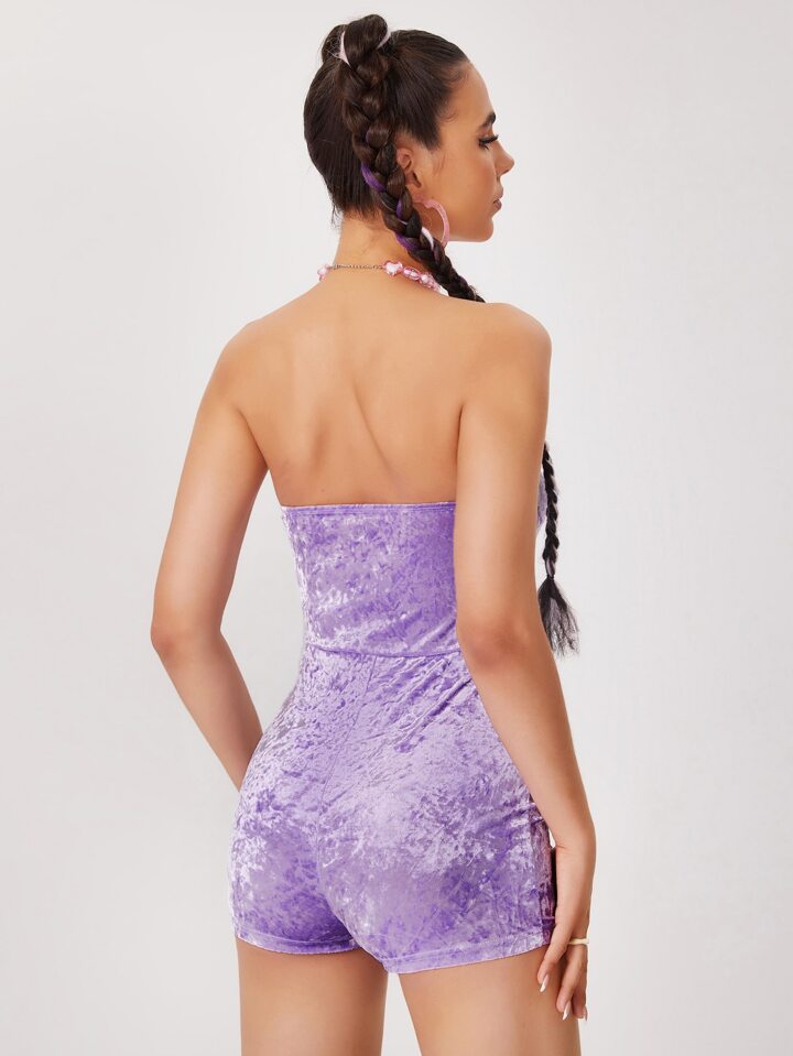 Tuta con schiena scoperta di velluto senza cintura a catena