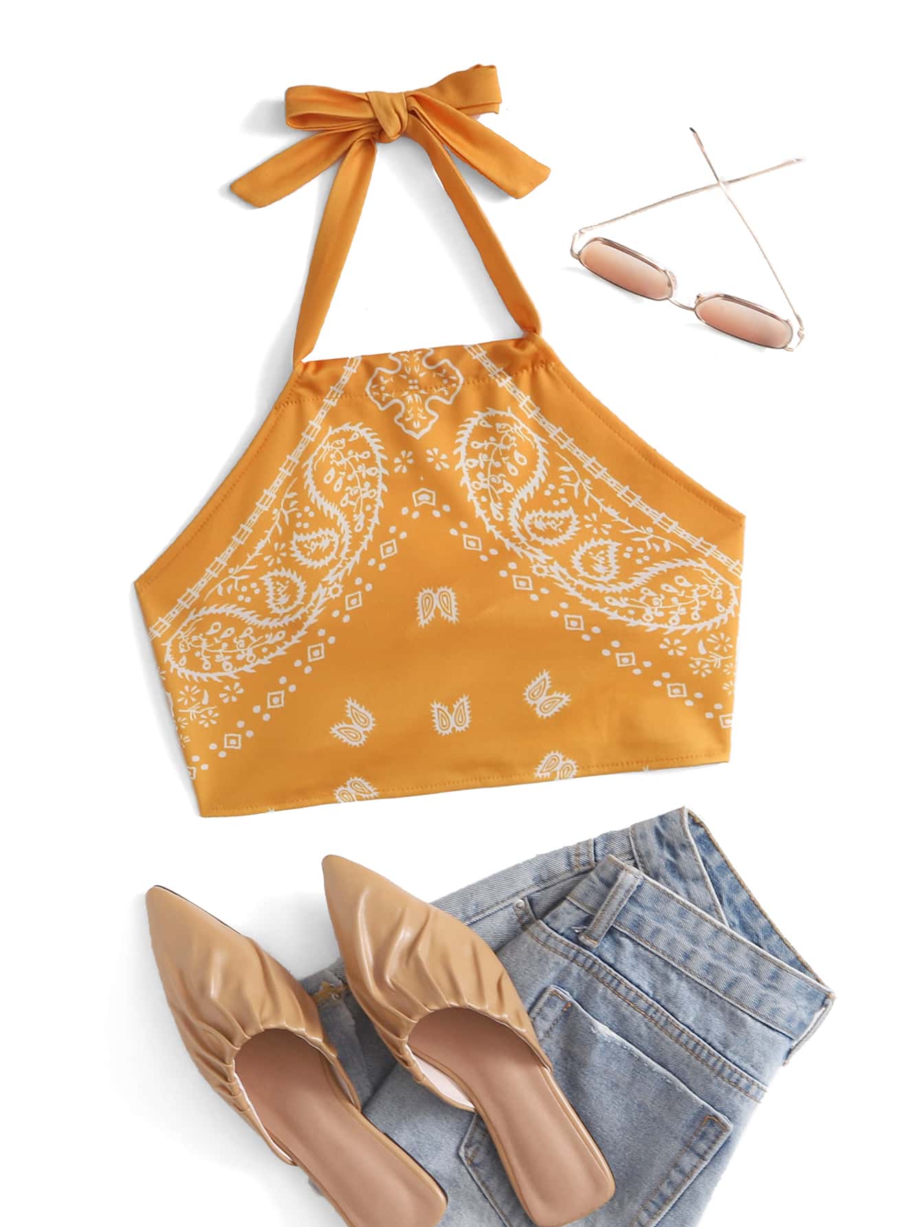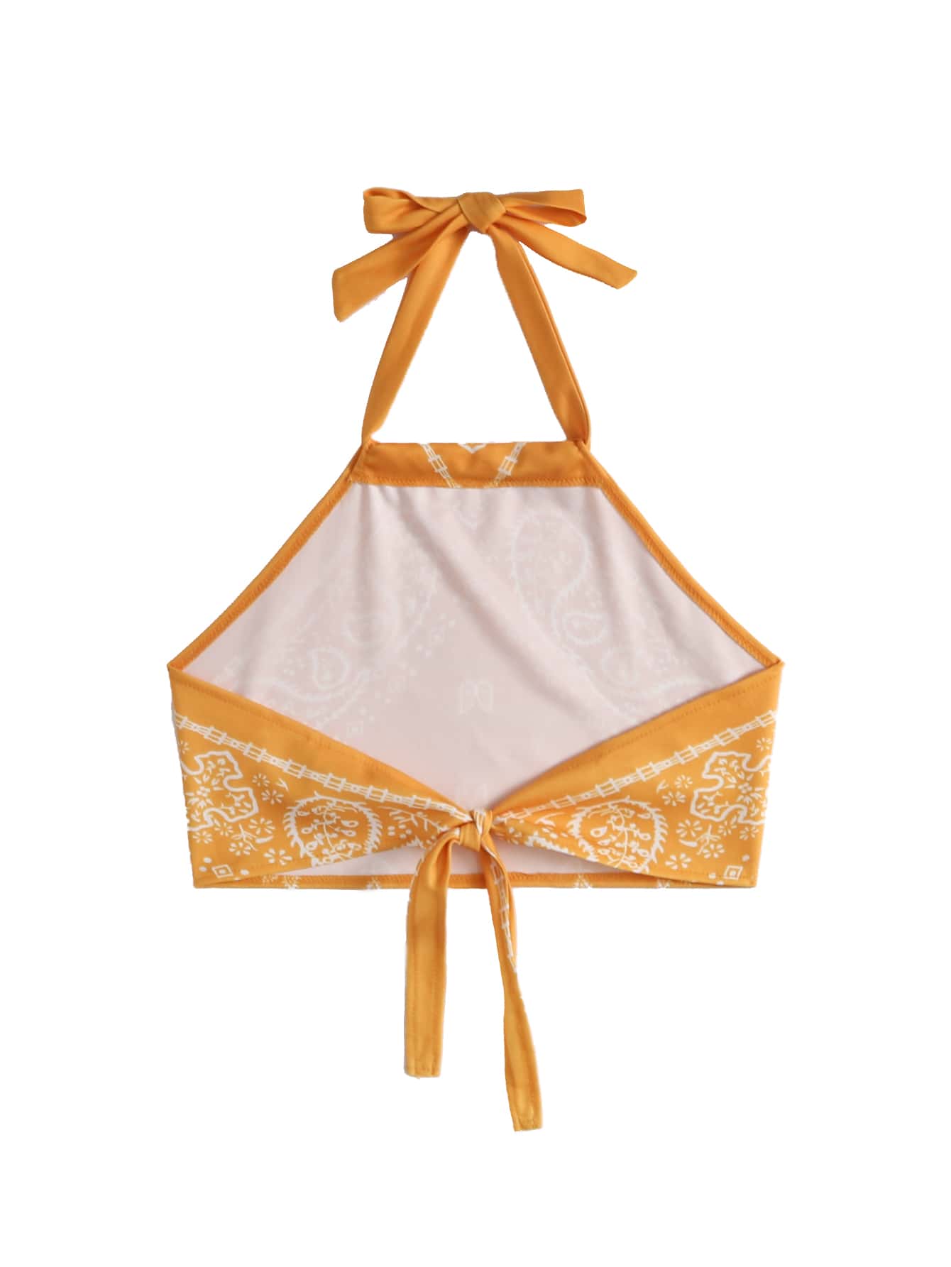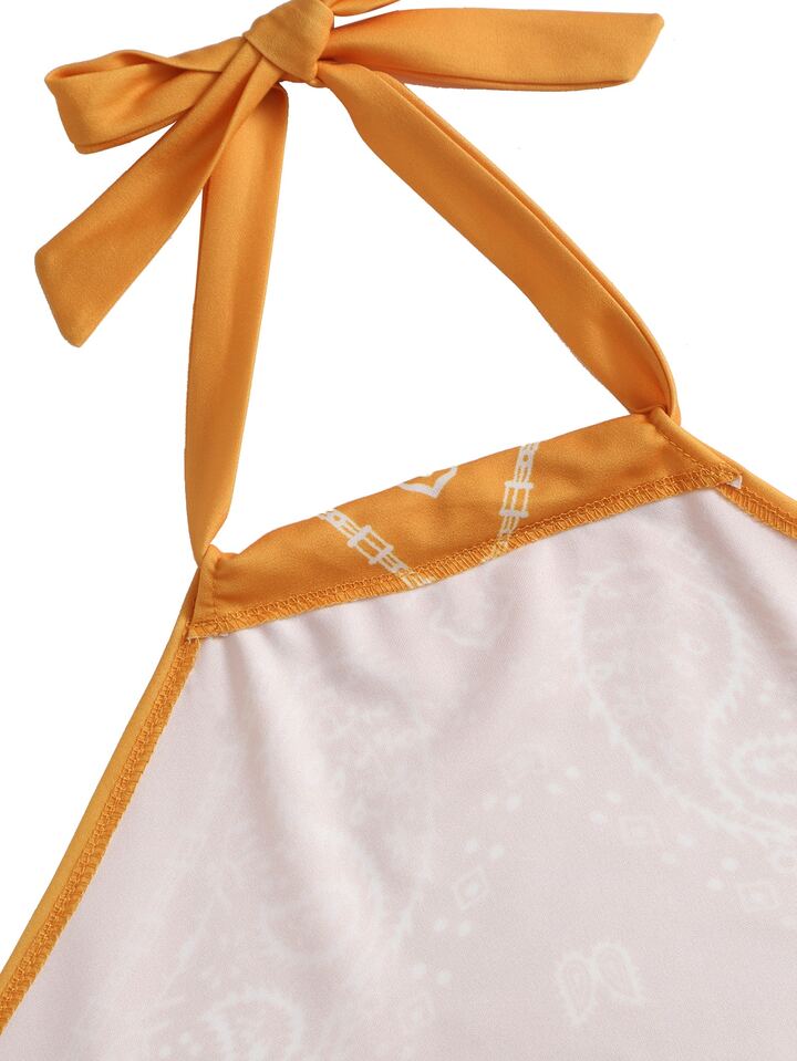 Top crop a collo halter in stampa vintage
