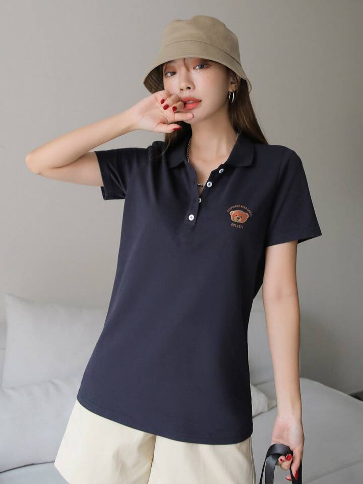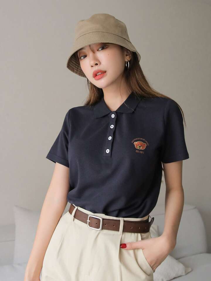 Tee Con Collo Polo E Stampa Grafica Di Orso E Lettera