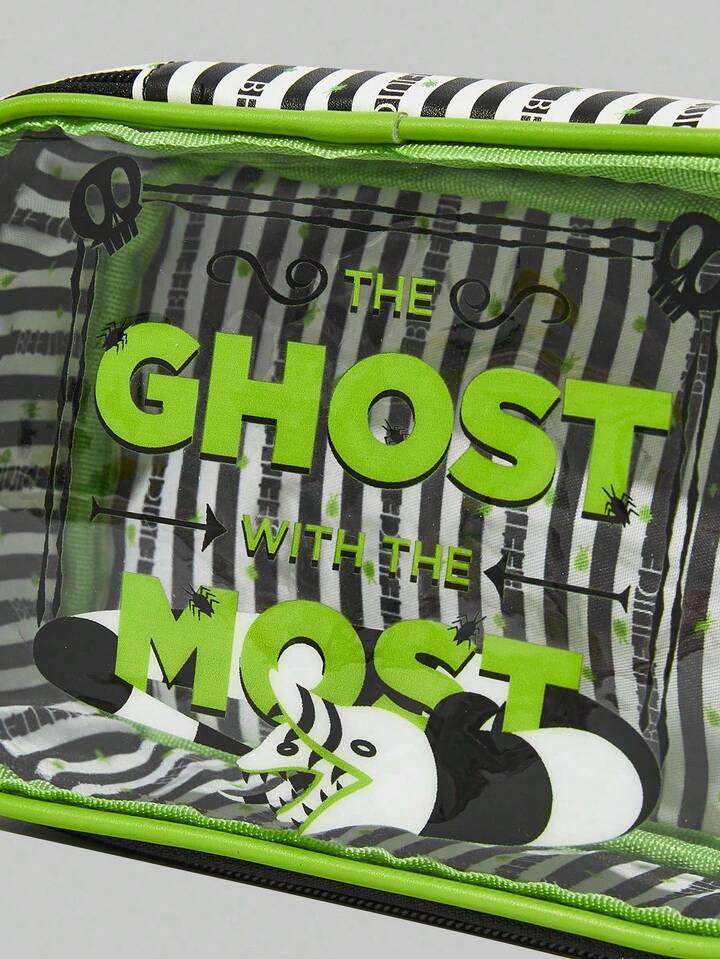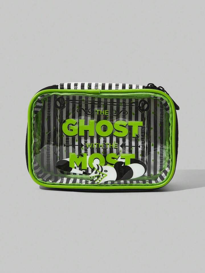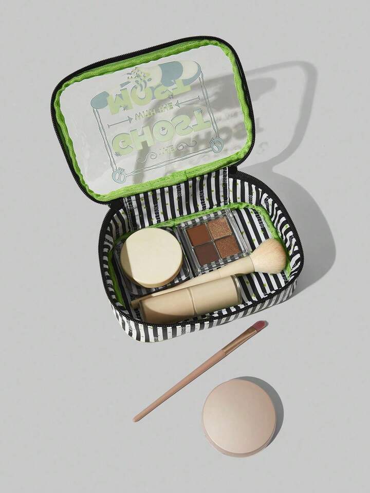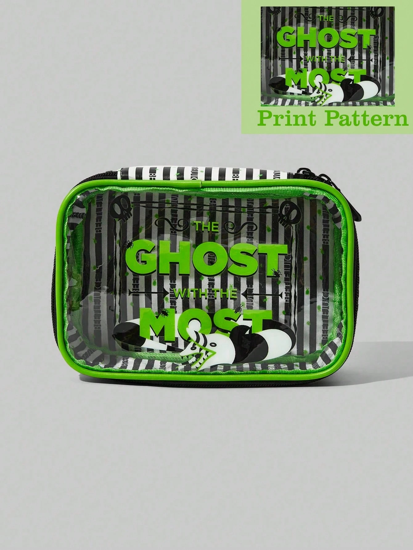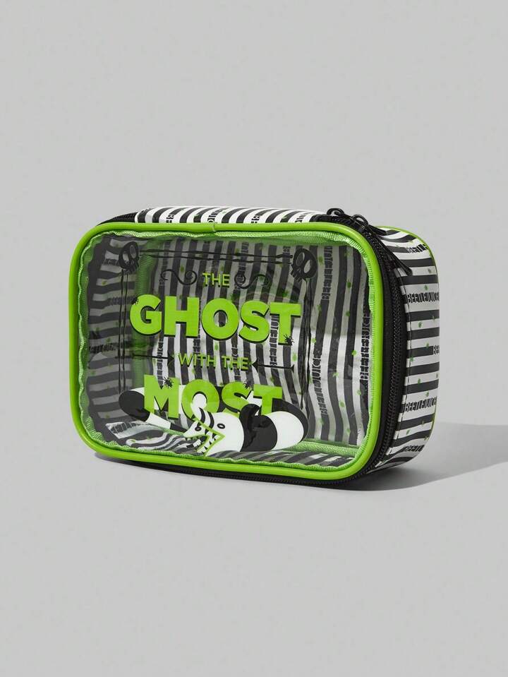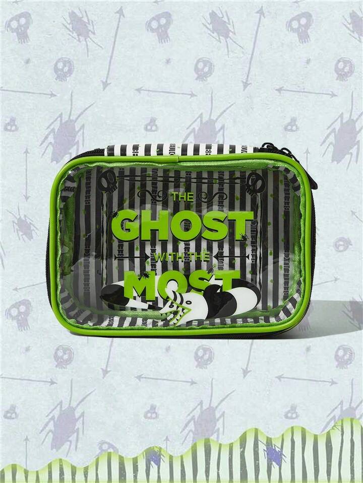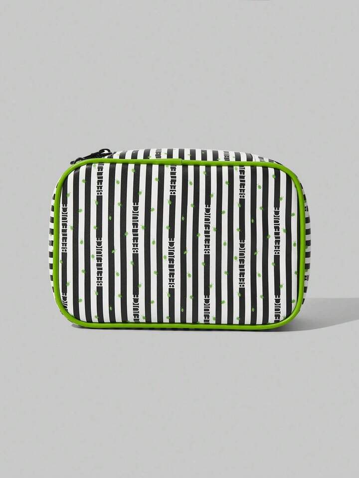 Beetlejuice | ROMWE Borsa cosmetica alla moda con motivo a righe e lettera trasparente