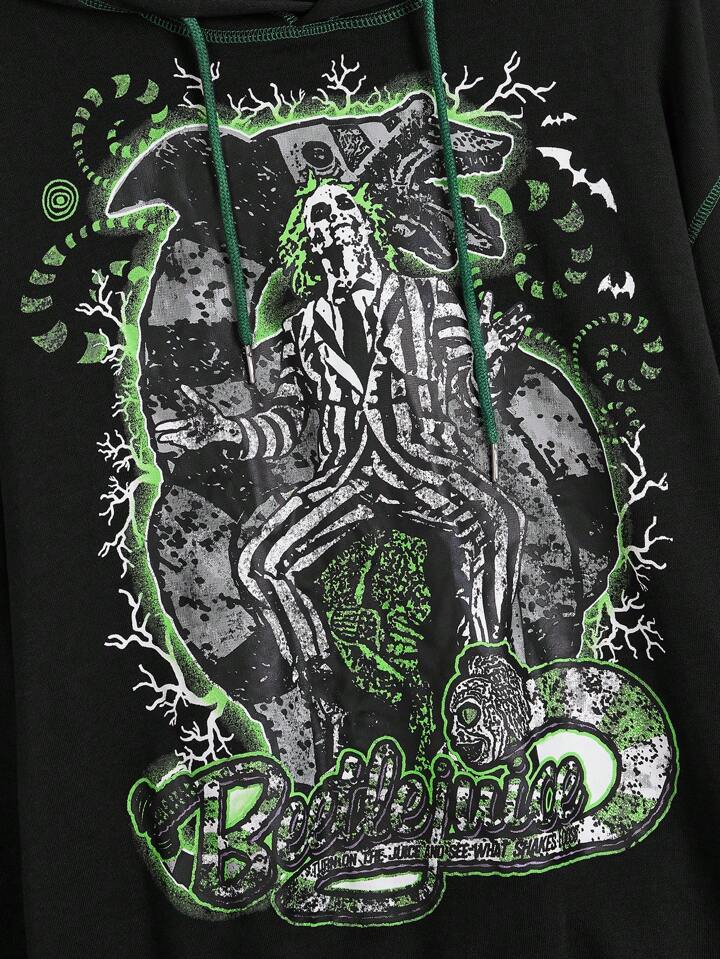Beetlejuice | ROMWE Felpa con cappuccio larga e con lacci stringivita casual da donna, con stampa a figura orrore e a lettere, con punti a contrasto, per primavera e autunno