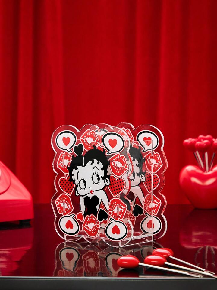 Betty Boop | ROMWE Astuccio per matite cosmetico con motivi a cuori e personaggi dei cartoni animati