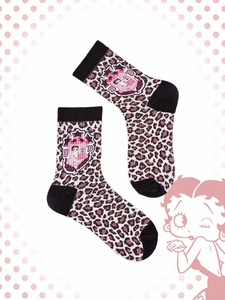 Betty Boop | ROMWE Calzini ciambella comodi con motivo cartoni animati e leopardato per donne