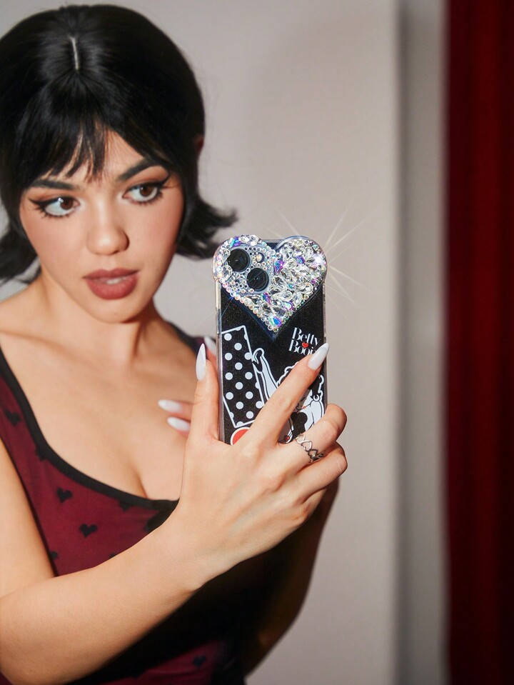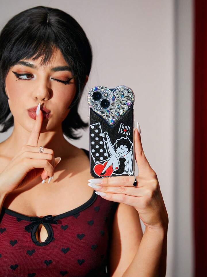 Betty Boop | ROMWE Custodia per telefono ragazza carina decorata con strass a forma di cartone animato