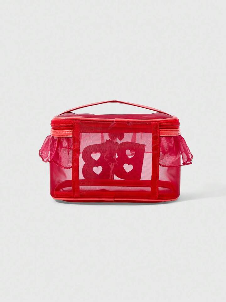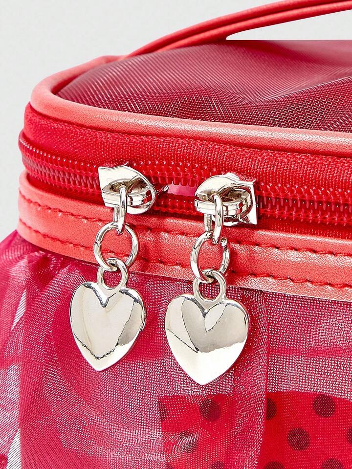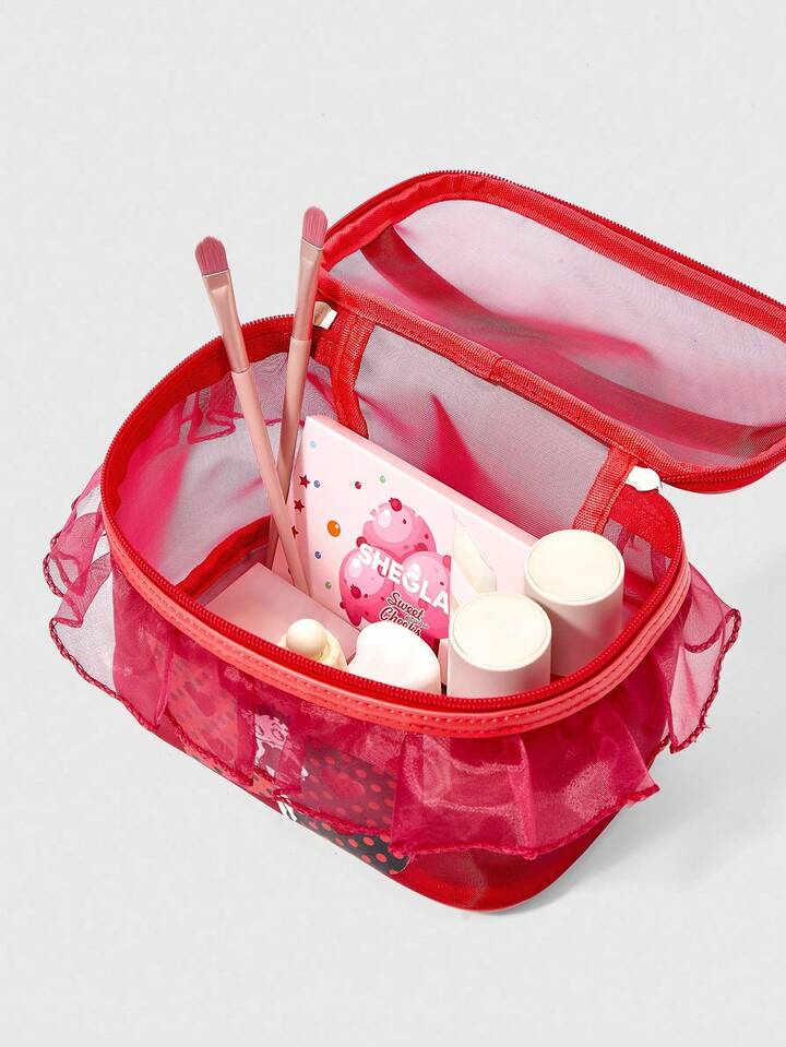 Betty Boop | ROMWE Borsetta cosmetica portatile con figura e motivo a pois alla moda, realizzata in pizzo e rete