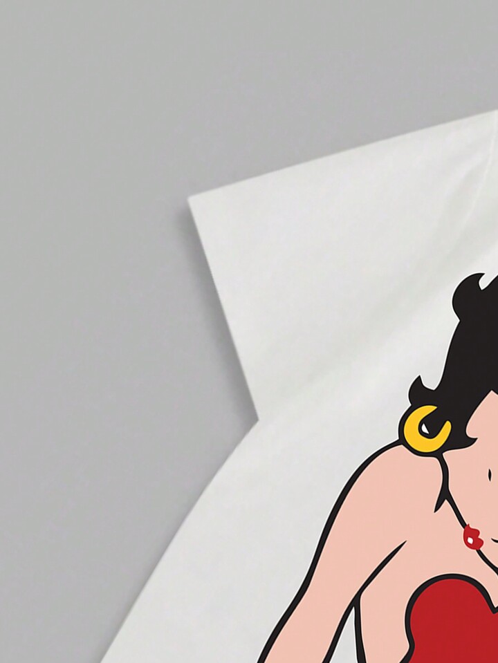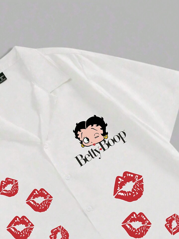 Betty Boop | ROMWE Camicia a maniche corte da uomo casual con stampa di personaggi dei cartoni animati e labbra, estiva, adatta per la scuola