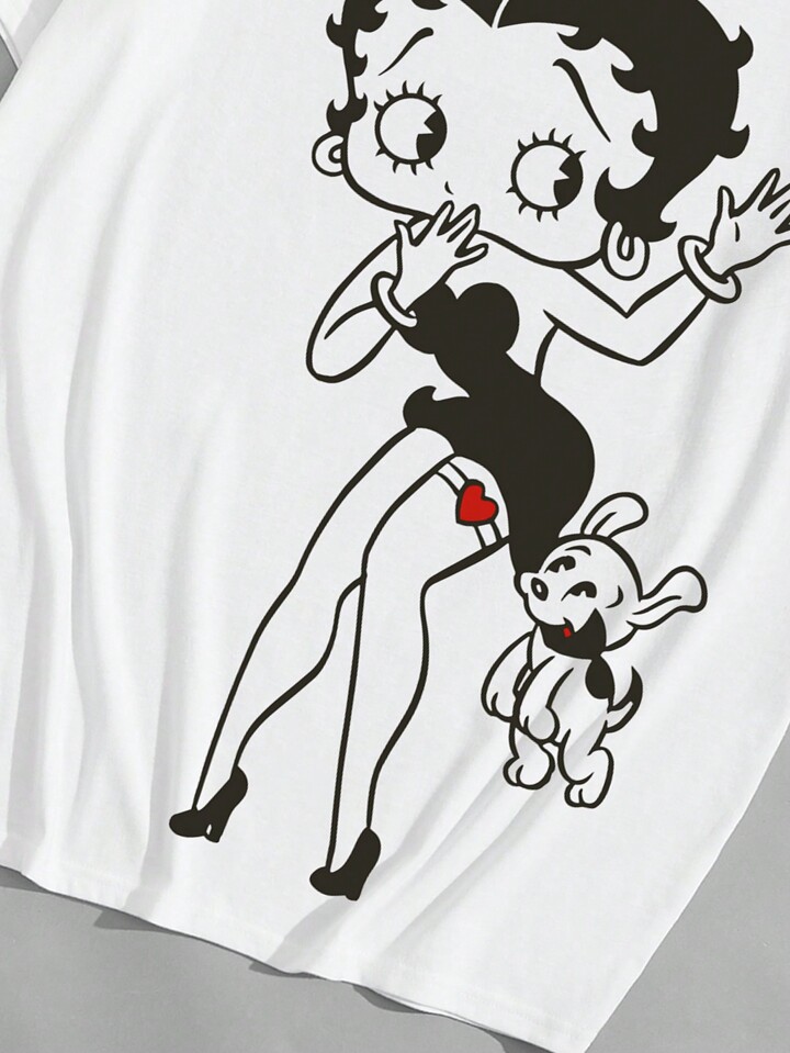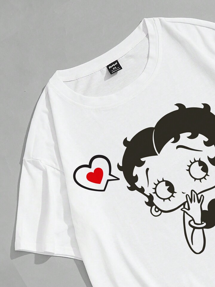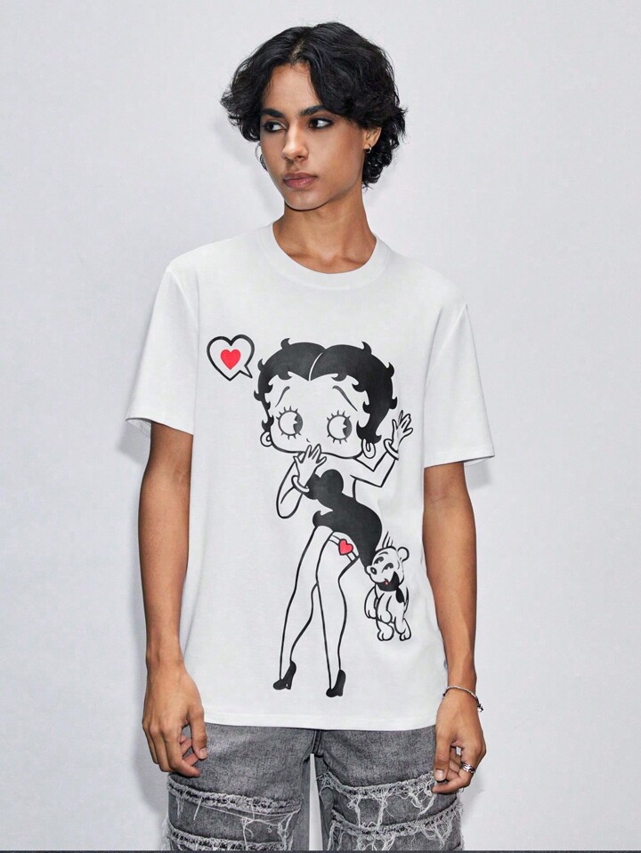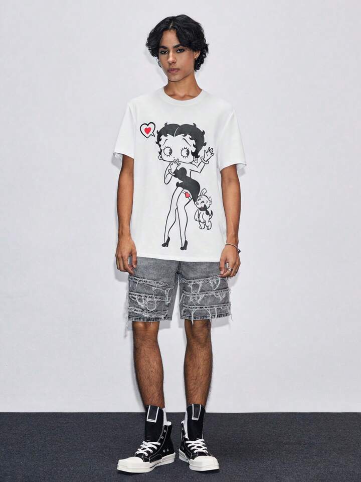 Betty Boop | ROMWE Maglietta a maniche corte casual da uomo con stampa a cartoni animati, estiva, per la scuola
