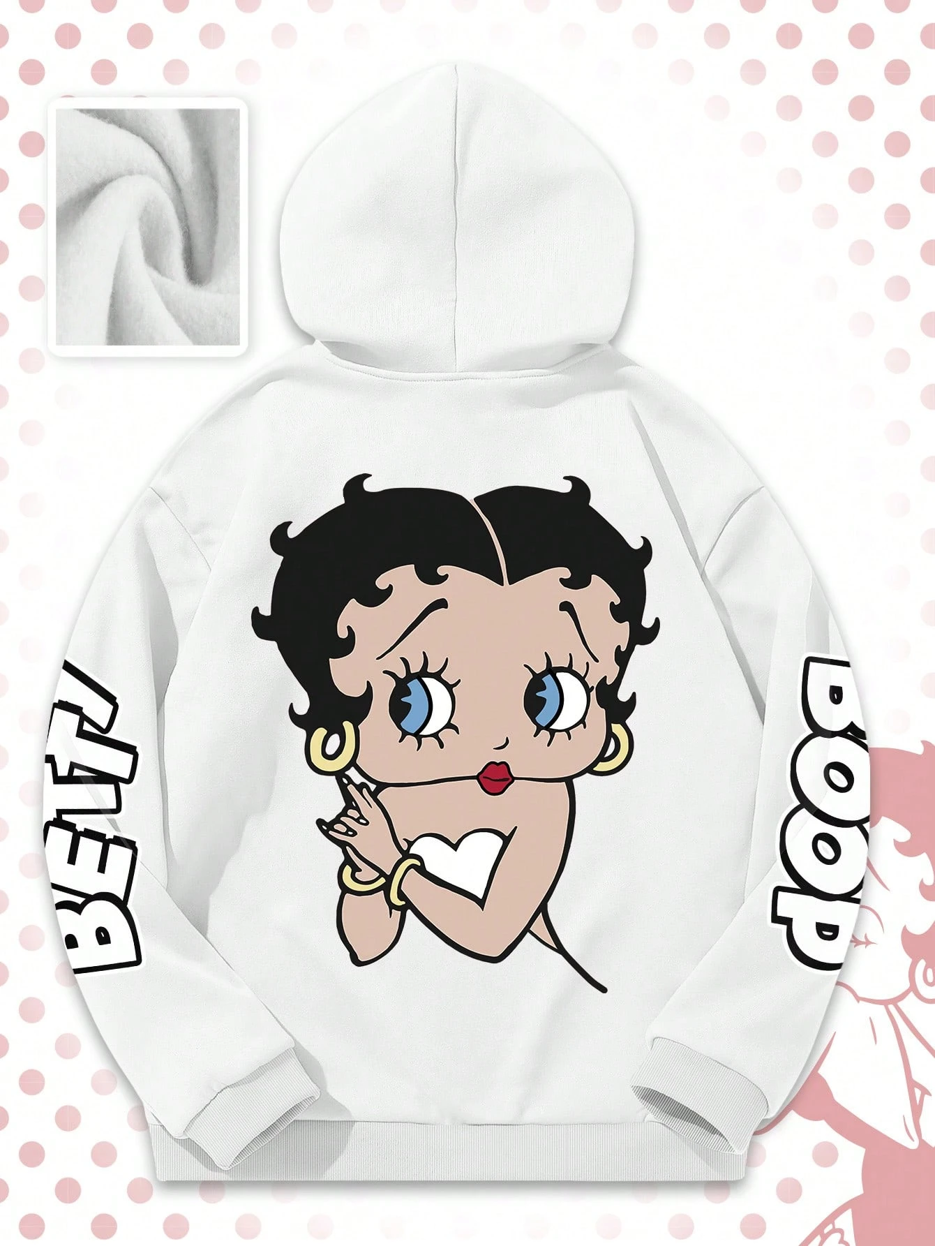 Betty Boop | ROMWE Felpa con cappuccio e chiusura lampo da uomo con grafica a cartone animato, comoda per l'autunno/inverno, top a maniche lunghe