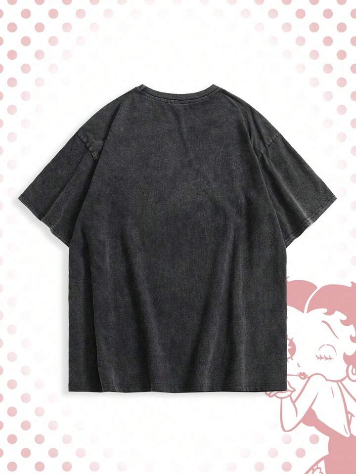 Betty Boop | ROMWE Maglietta estiva casual con stampa a cartone animato e leopardo, scollo tondo, maniche corte, taglie comode