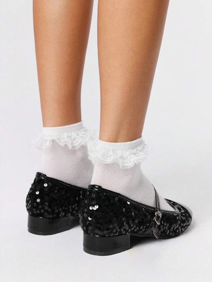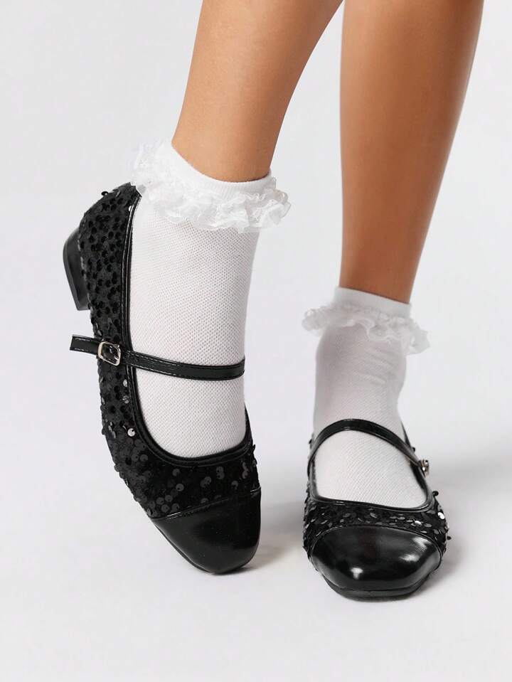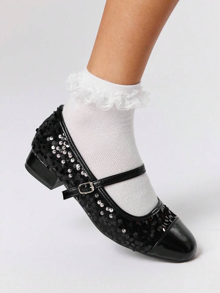 Suola chunky nera, pannelli in pelle e glitter misti, design unico, di moda e accattivante, facile da indossare con stile