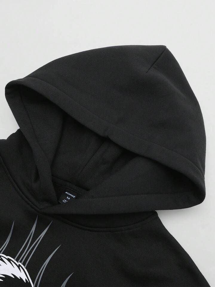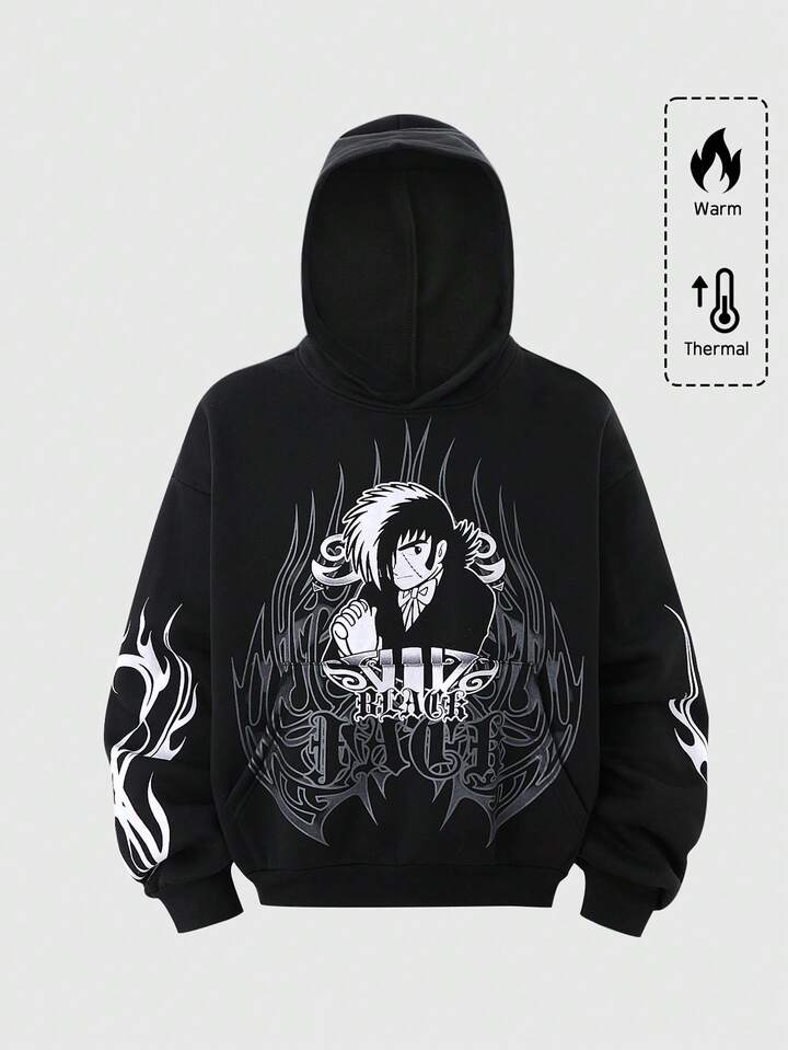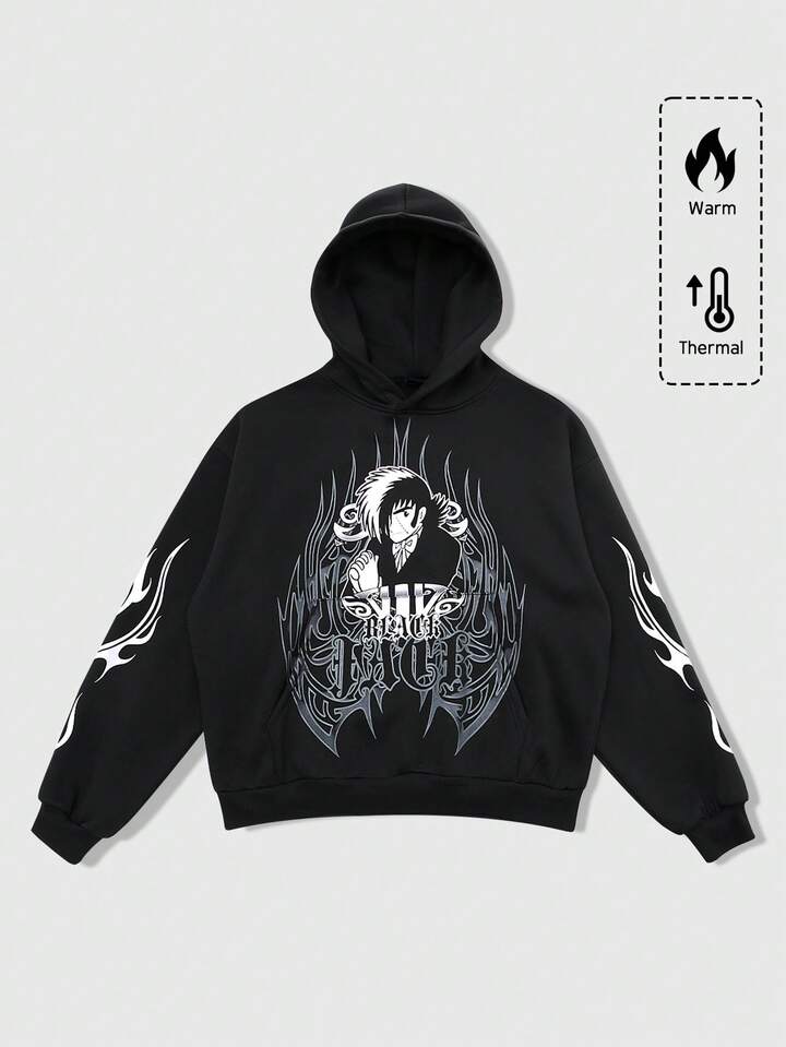Black Jack X ROMWE Felpa con cappuccio da uomo con stampa grafica a cartone animato, adatta per l'autunno/inverno