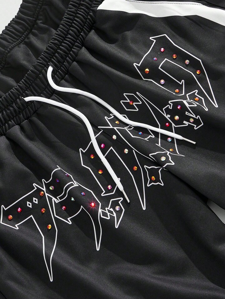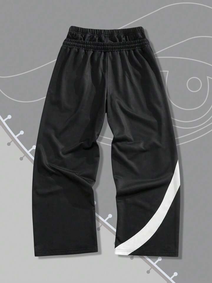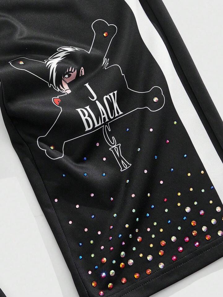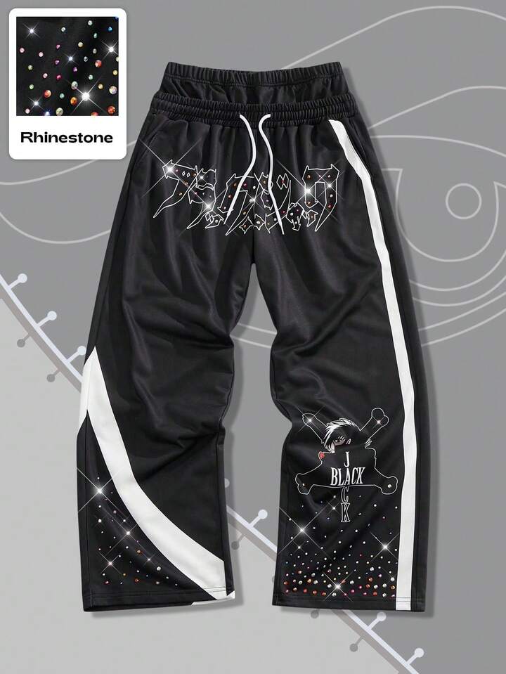 Black Jack X ROMWE Pantaloni della tuta casual da uomo con grafica a lettere e vita con coulisse