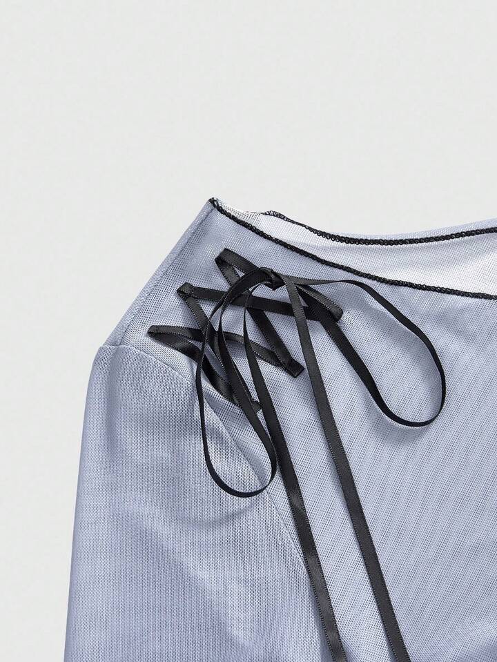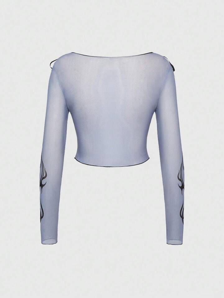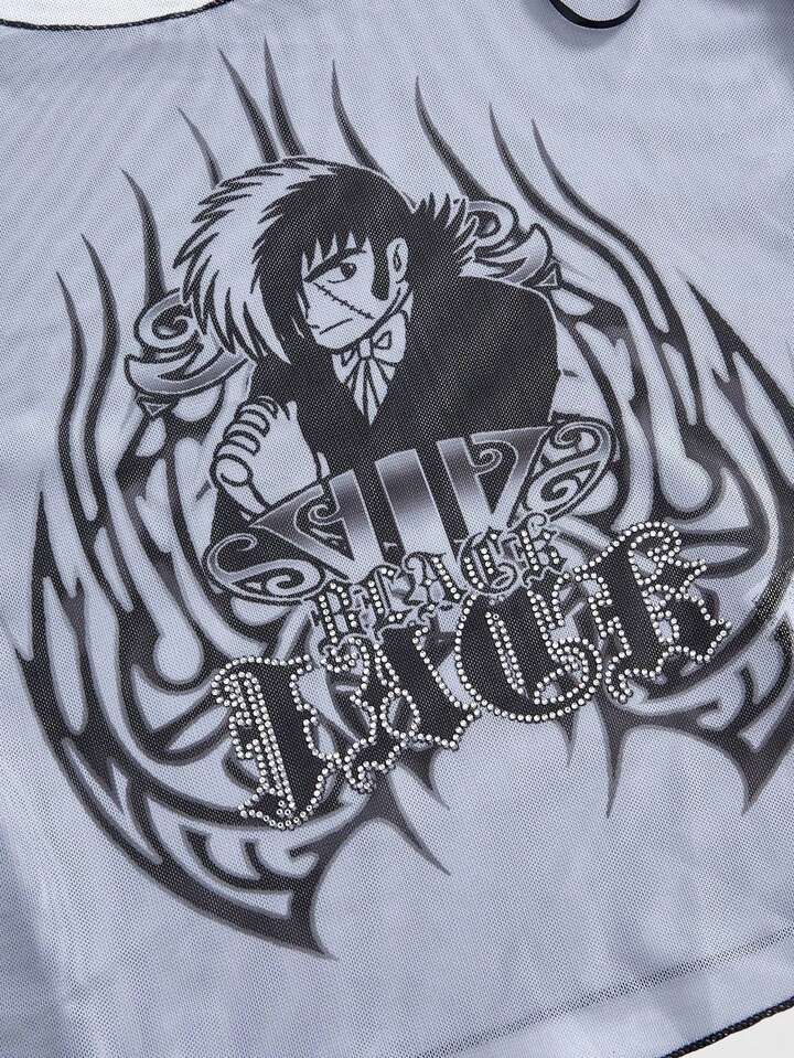 Black Jack X ROMWE Maglietta da donna in rete trasparente con grafica a figura