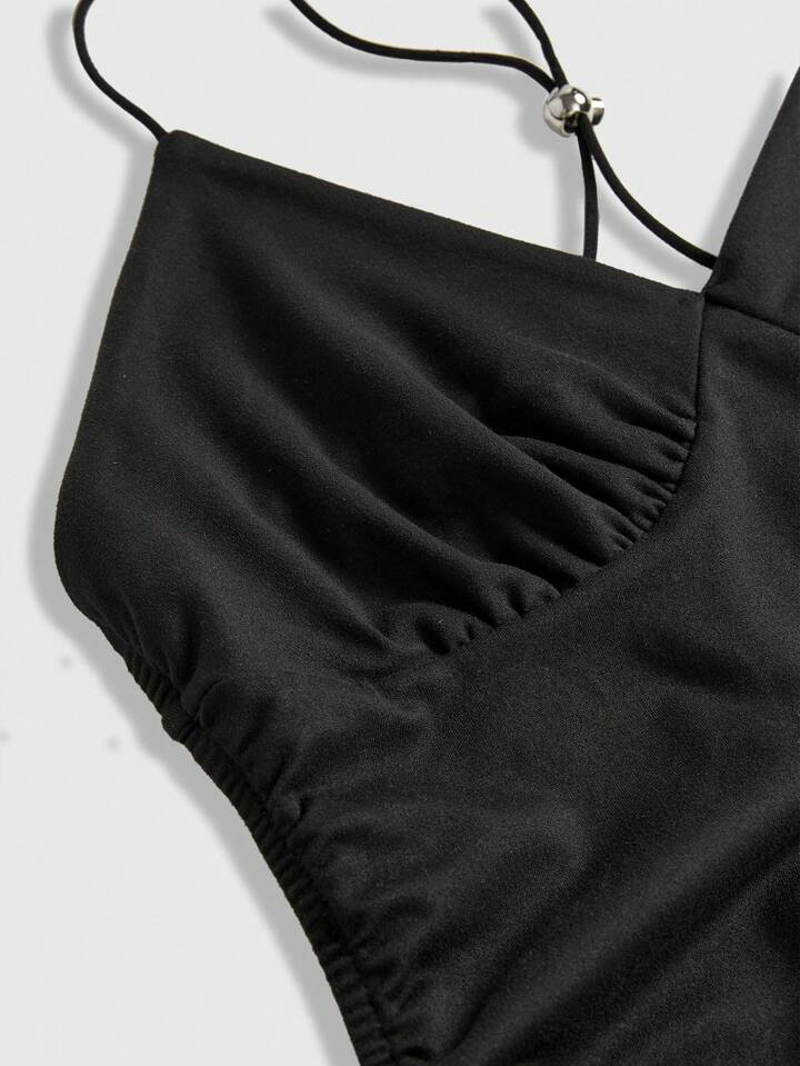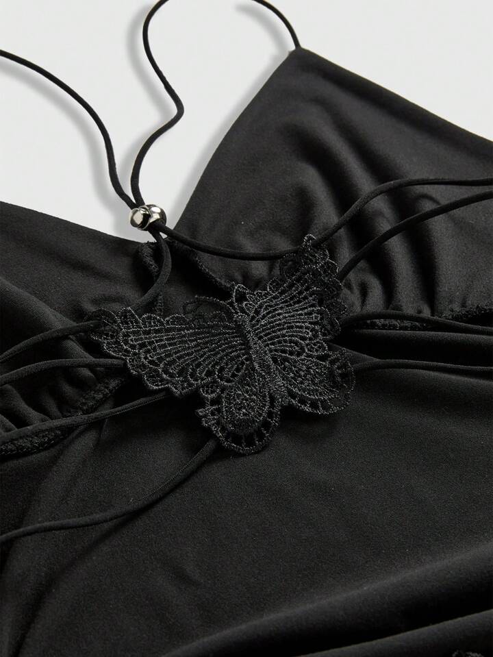 Vestito sensuale da donna con farfalla a cravatta senza schienale, pieghe a bodycon
