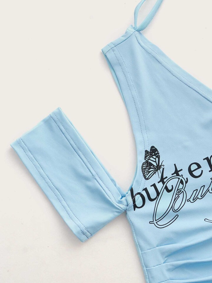 Maglietta con stampa farfalla collo asimmetrico