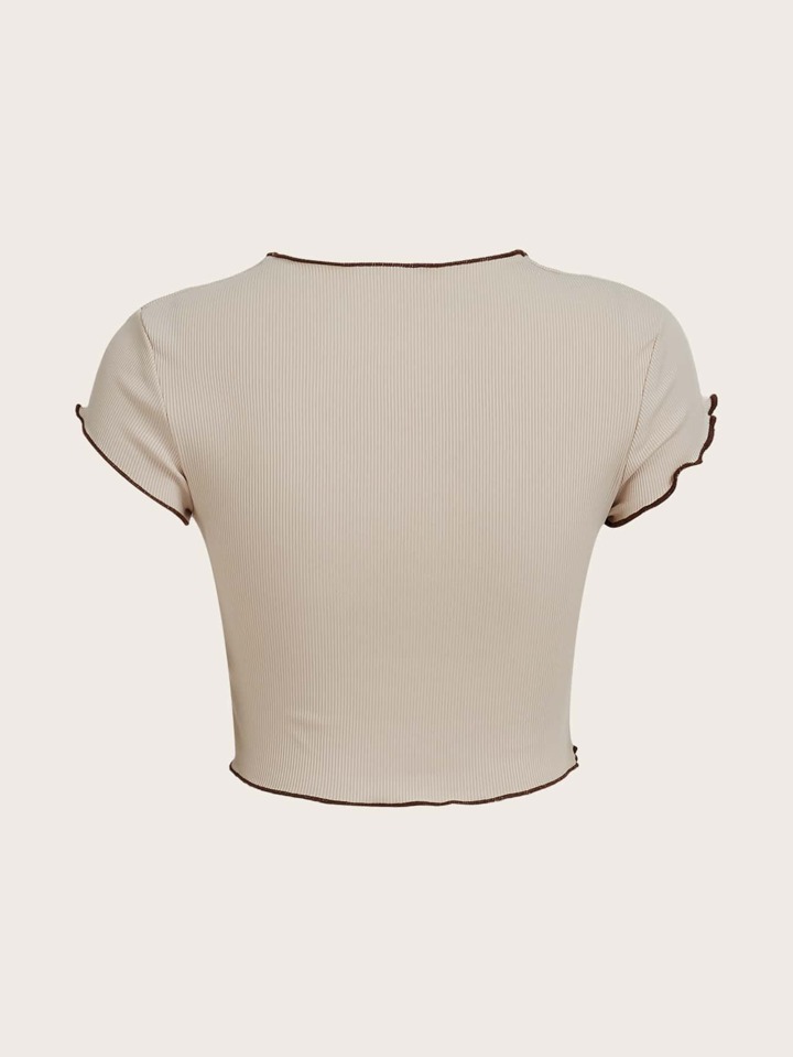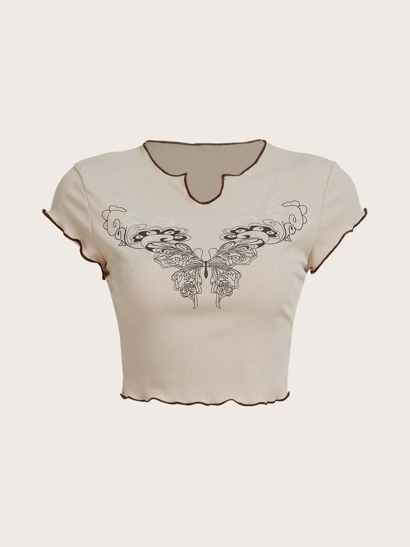 Maglietta con stampa farfalla orlo lattuga con collo dentellato