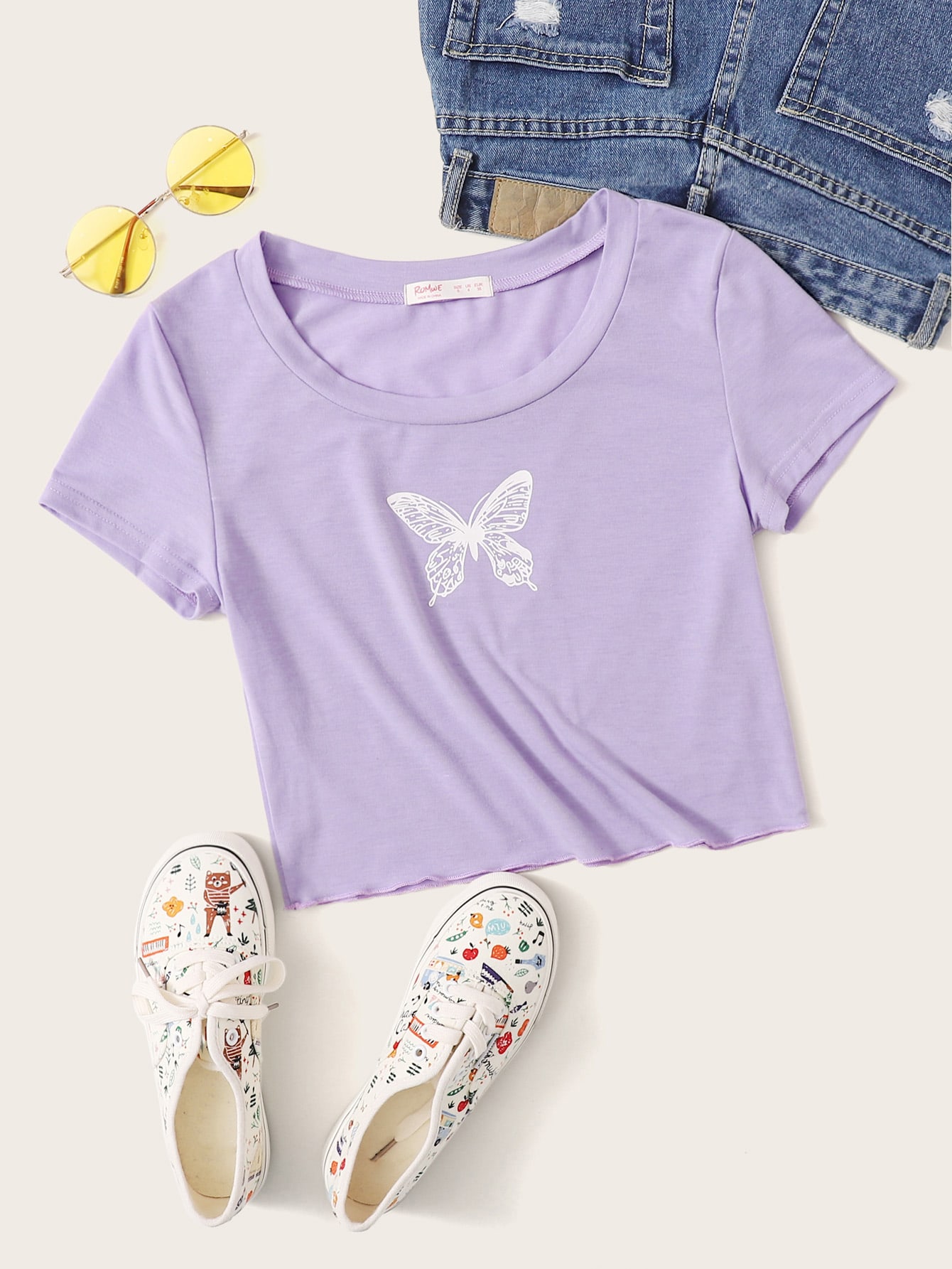 Maglietta viola con stampa farfalla