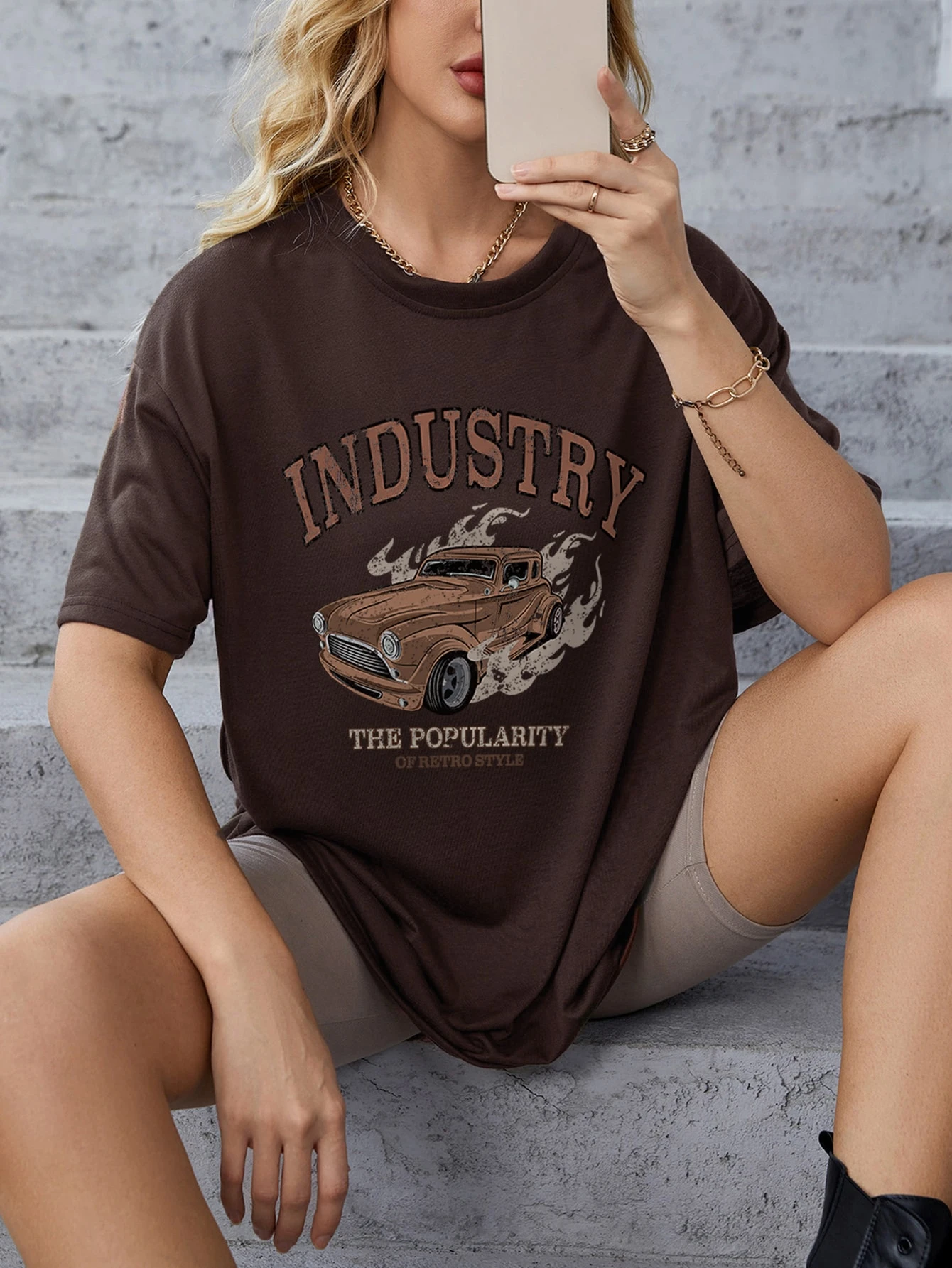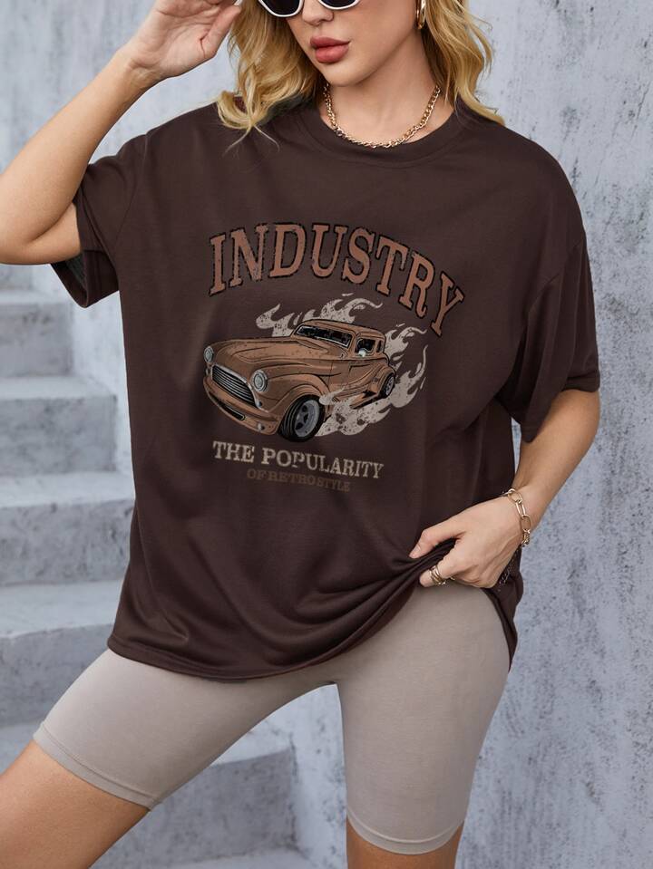 Maglietta con spalla cadenti auto e lettere