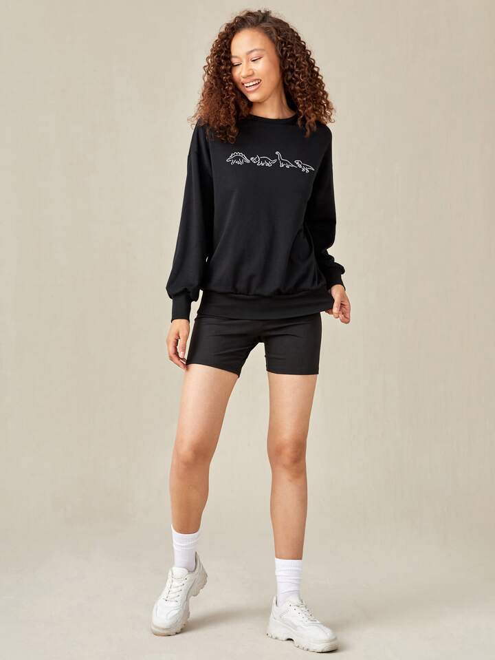 Shorts da ciclismo monocolore & Felpa con dinosauro di fumetto