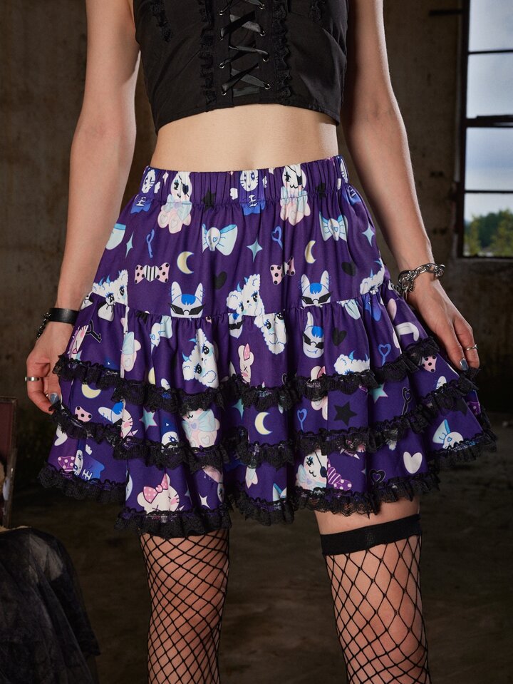 Gonne con stampa fumetto pizzo a contrasto stratificato