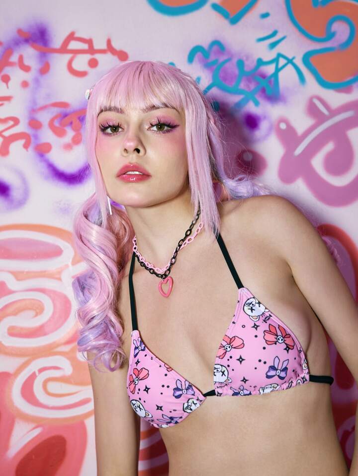 Bikini con stampa cartoni animati con laccetti sul collo e sui fianchi