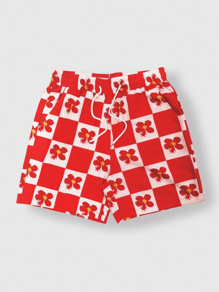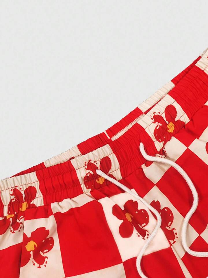 Casual Pantaloncini da uomo per vacanza estiva, con vita con cordoncino, con stampa floreale e a quadri