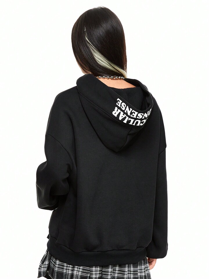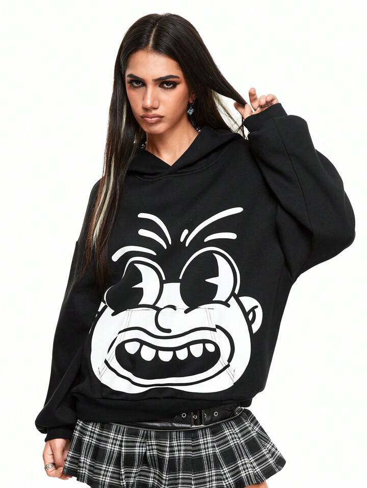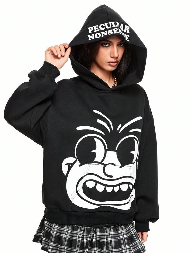 Felpa con cappuccio casual e larga con stampa grafica divertente