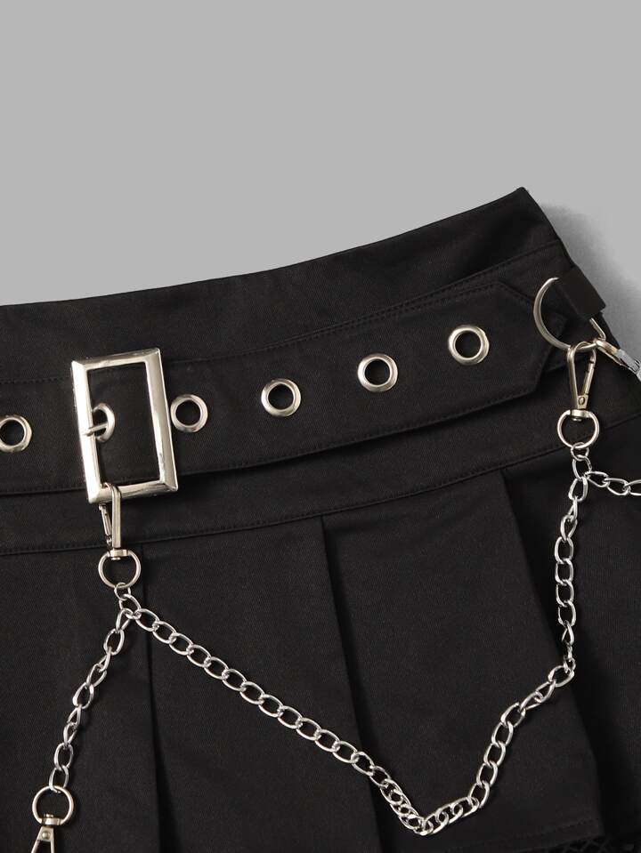 Gonna plissettata con catena dettaglio quadrato a rete da pesce contrasto
