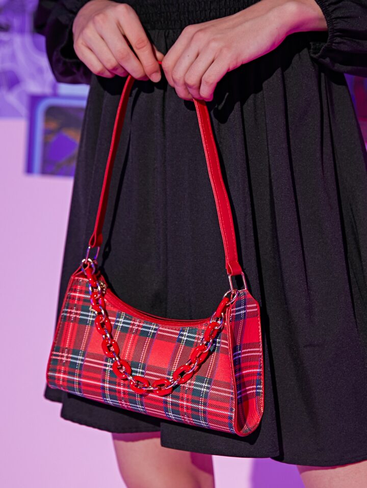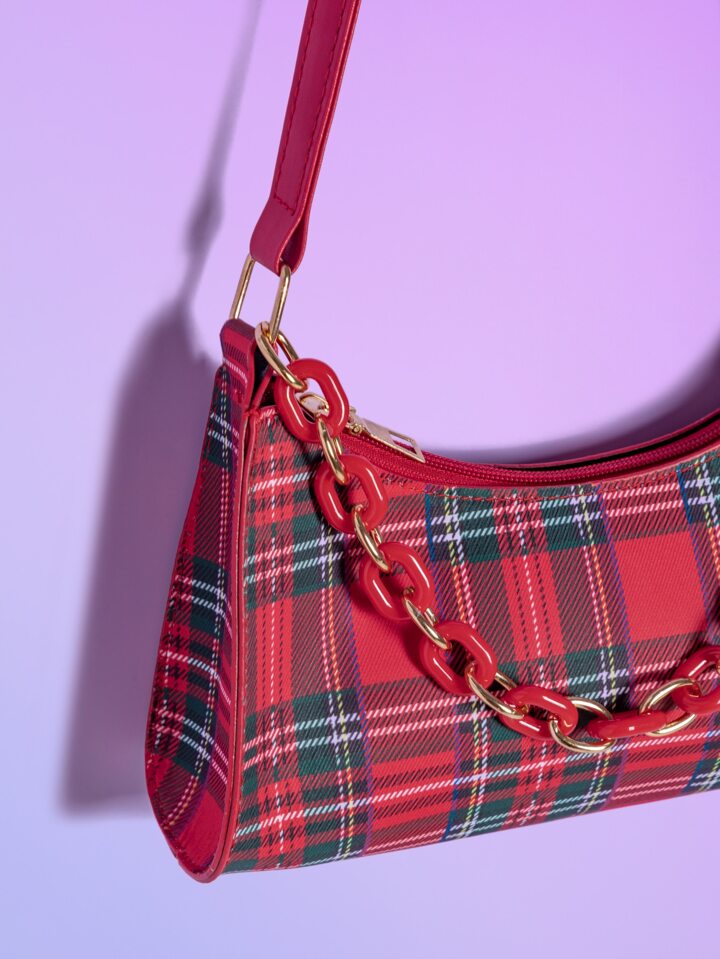 Borse a spalle con decorato a catena con motivo quadri