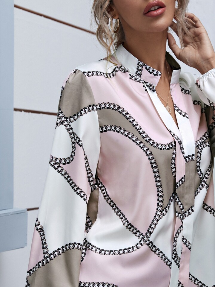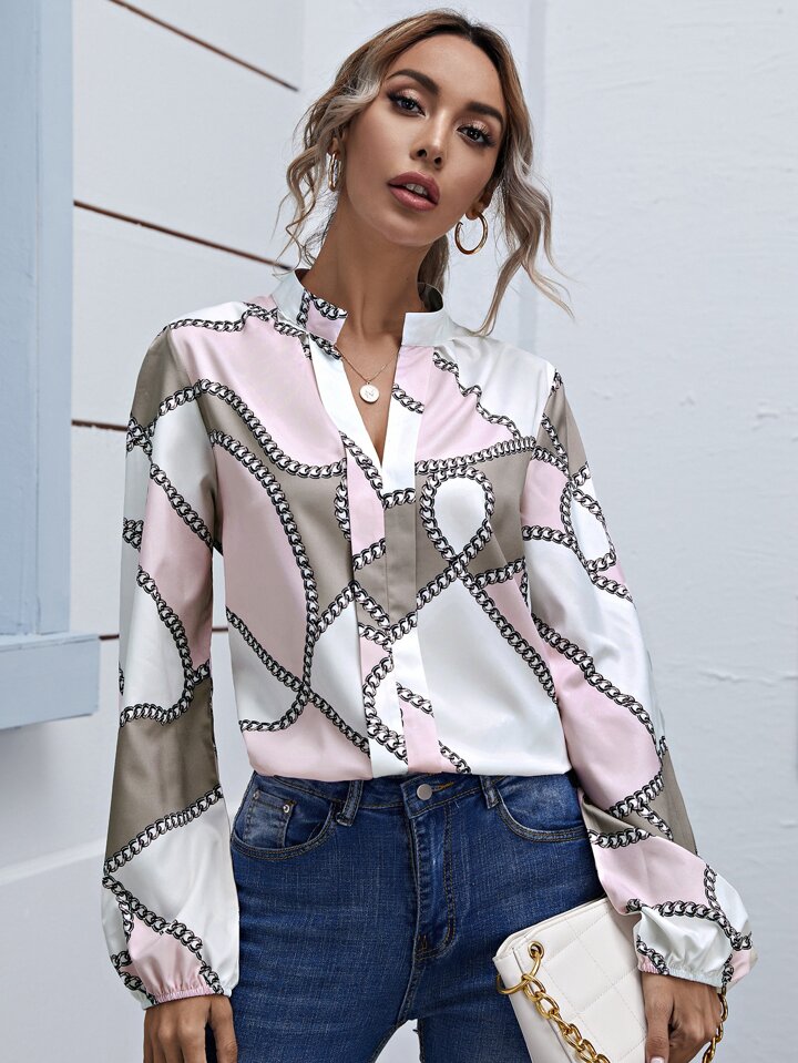 Camicetta con colletto a revers e stampa catena