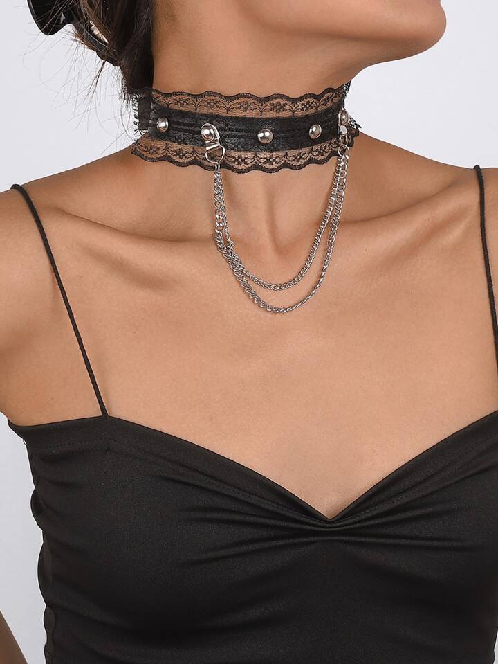 Choker con catena & con borchie
