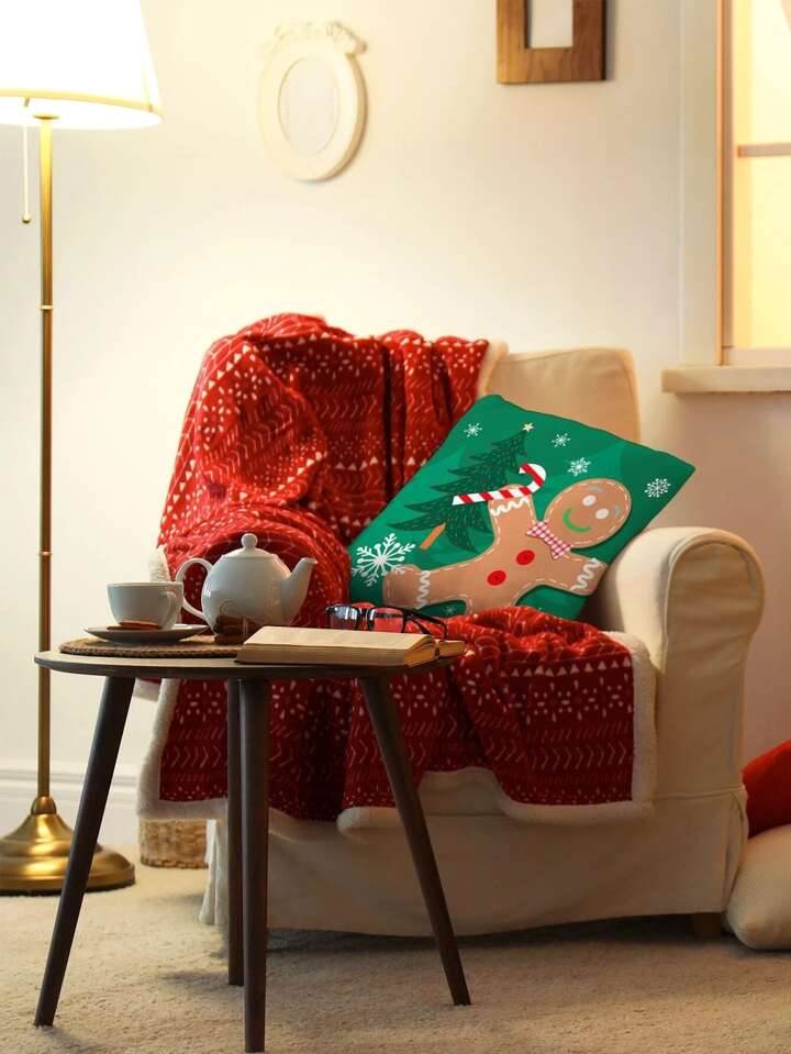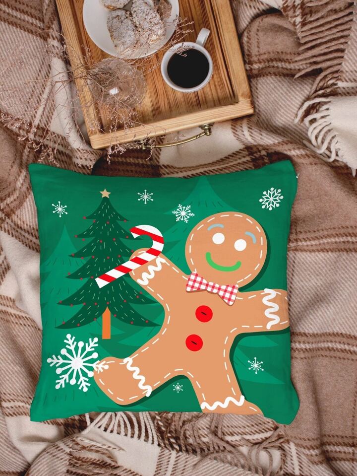 Federa per cuscino natalizio omino di pan di zenzero senza riempitivo