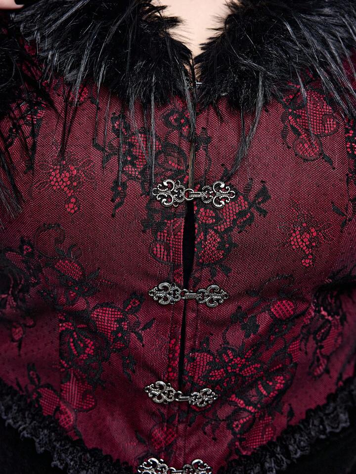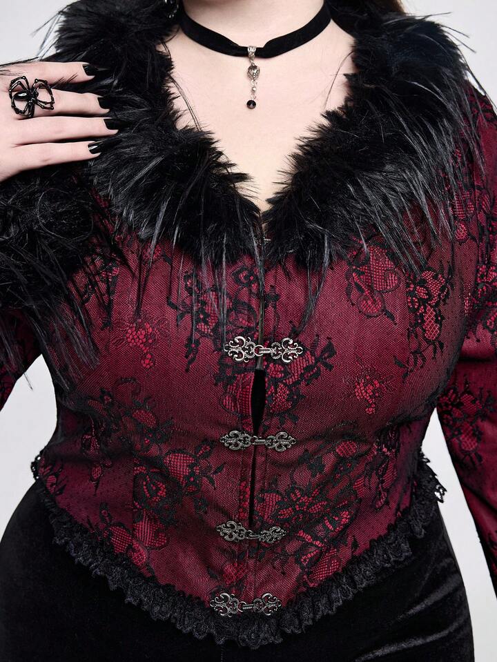 Goth Giacca corta in tessuto composito in pizzo gotico con colletto in piume di struzzo, adatta per l'autunno/inverno, taglie comode