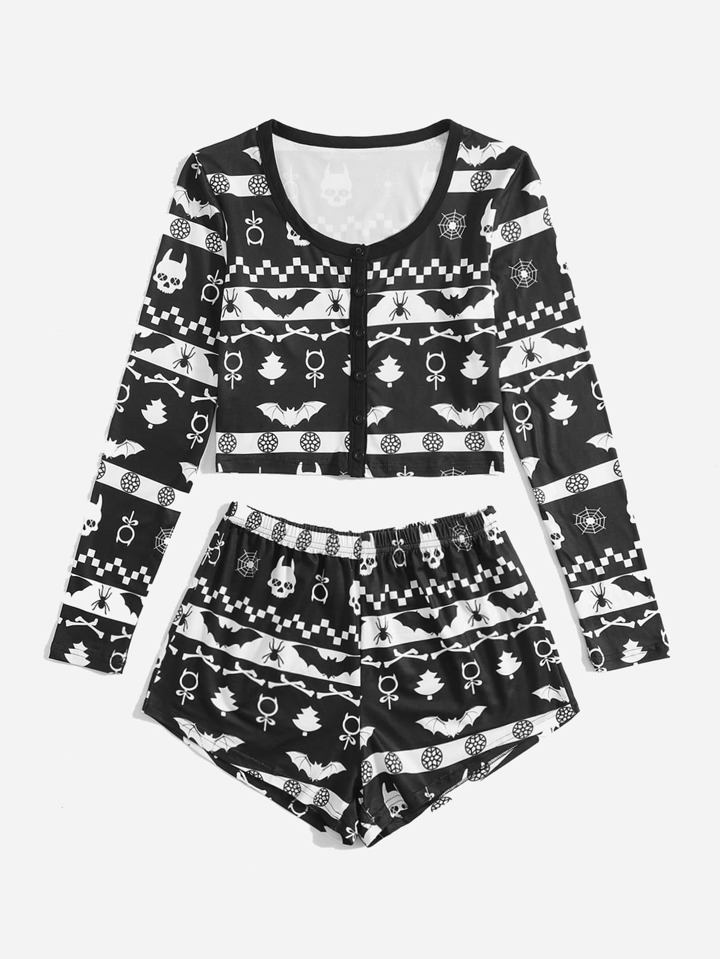 Set pigiama Natale teschio con stampa geo