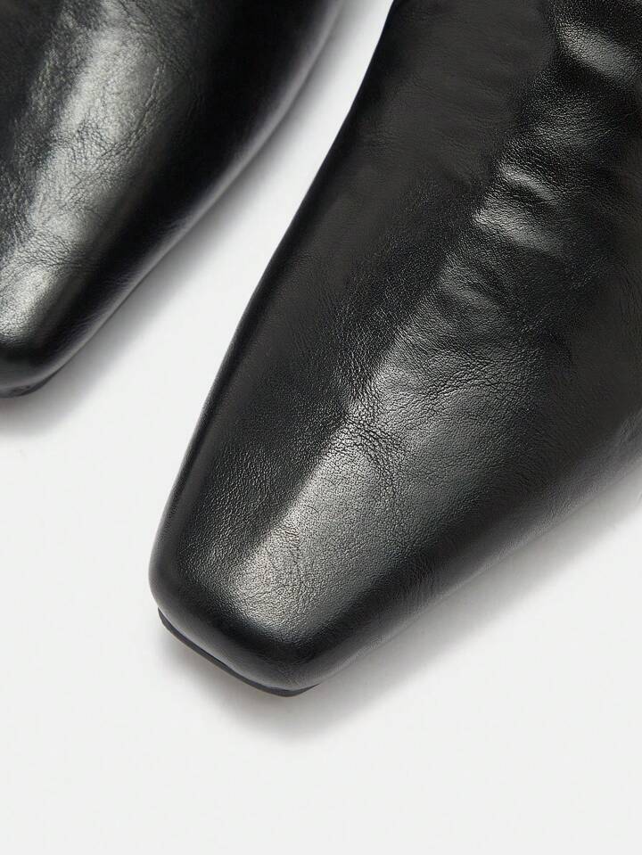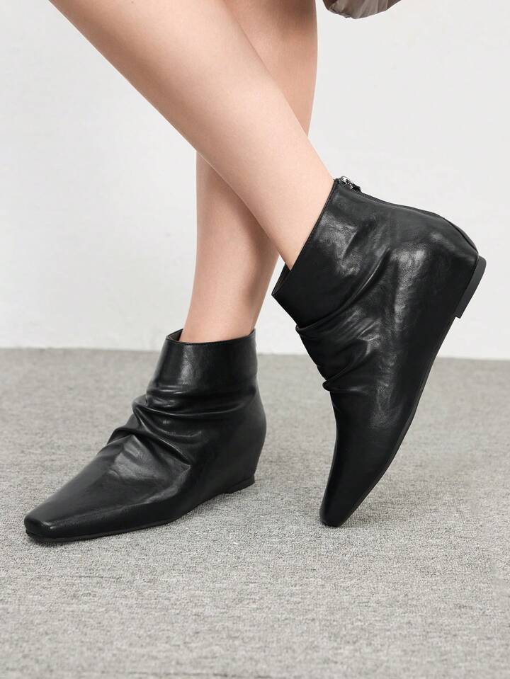 Stivaletti alla caviglia neri classici con tacco a zeppa nascosto, design grinzoso, cerniera sul retro, snellente e versatile per San Valentino