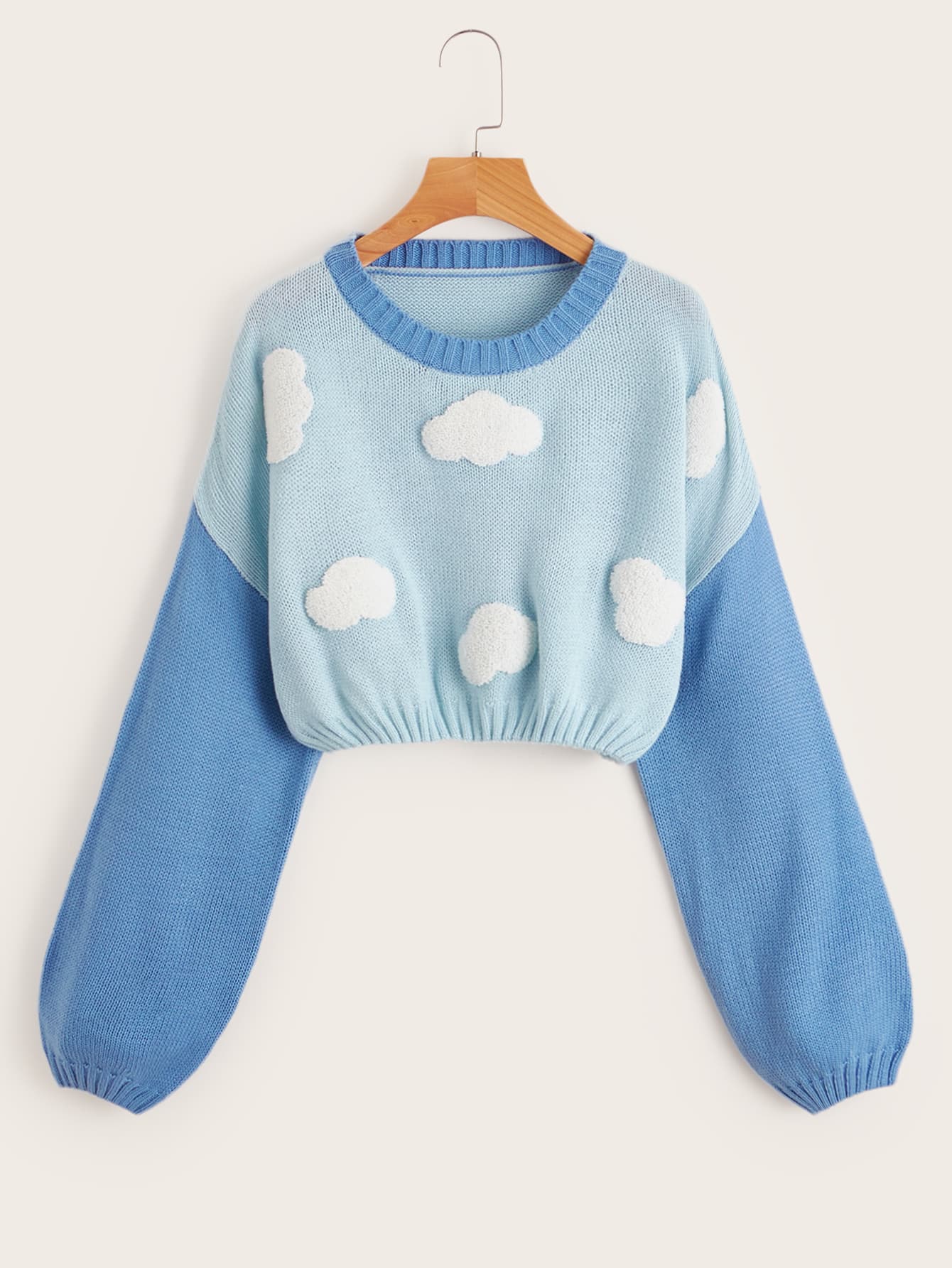 Maglione corto con motivo nuvola di blocchi di colore
