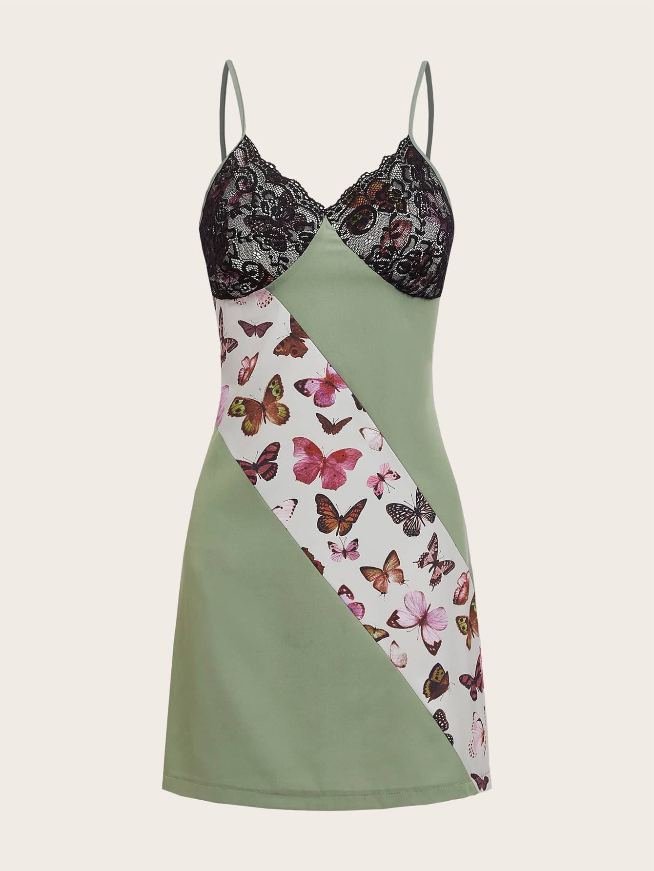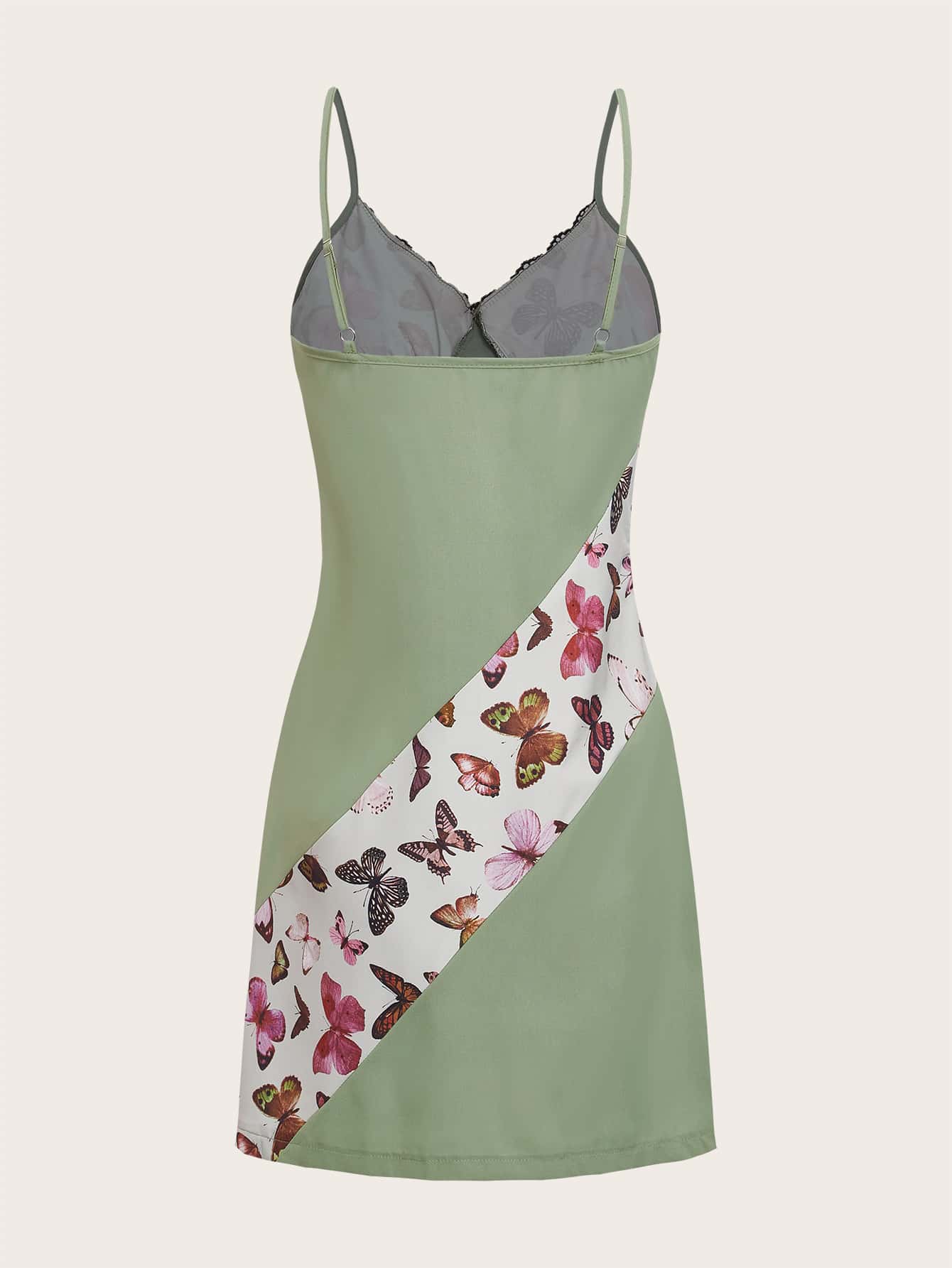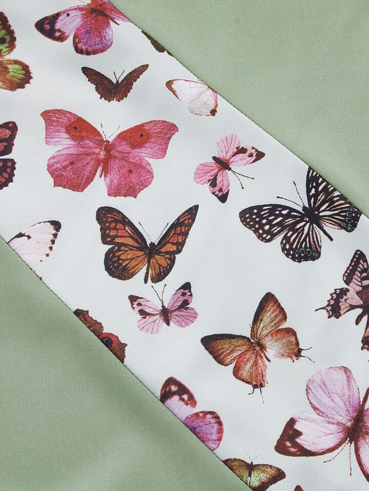 Abiti color block con stampa farfalla pizzo a contrasto
