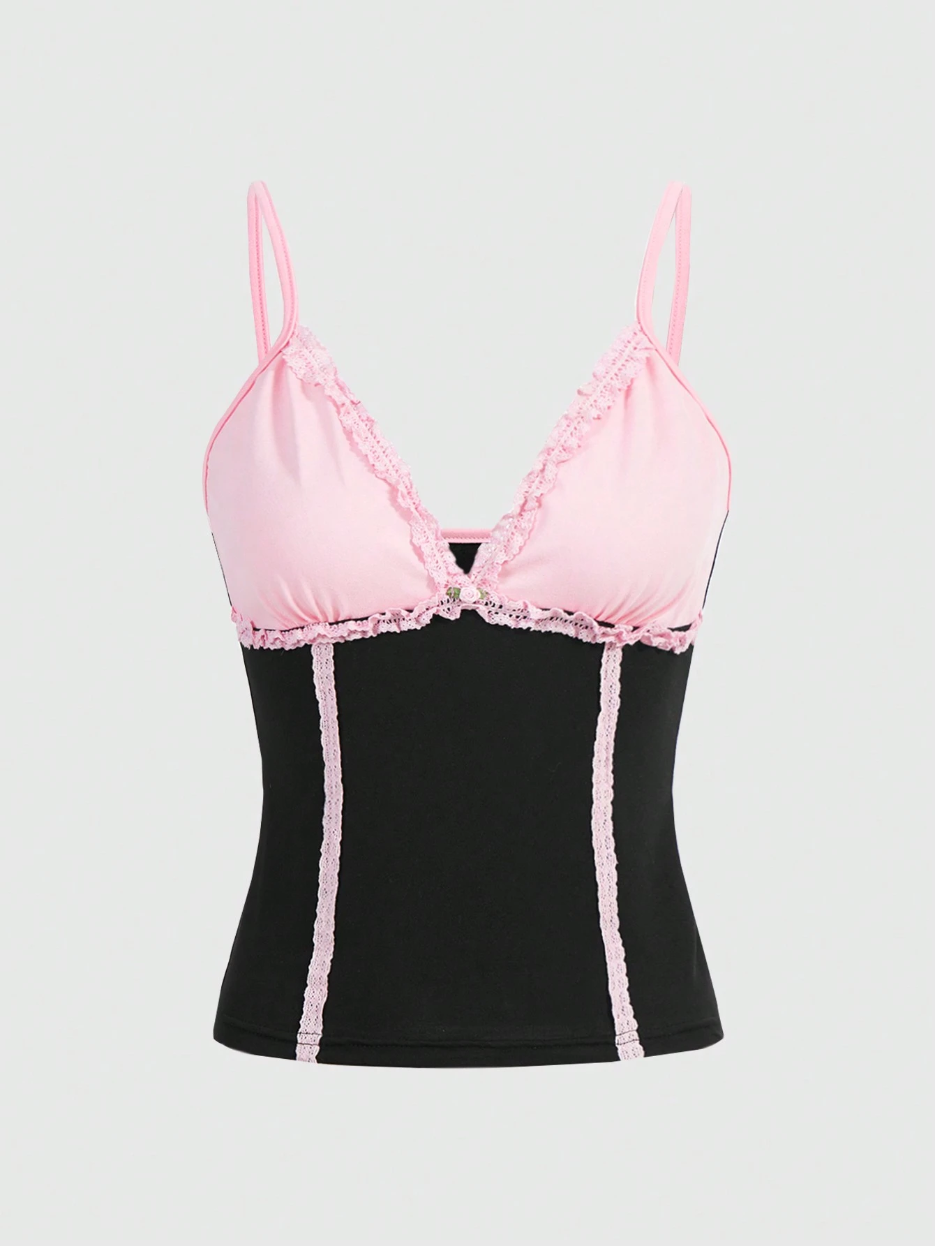 Top bretelle sottile color block pizzo a contrasto