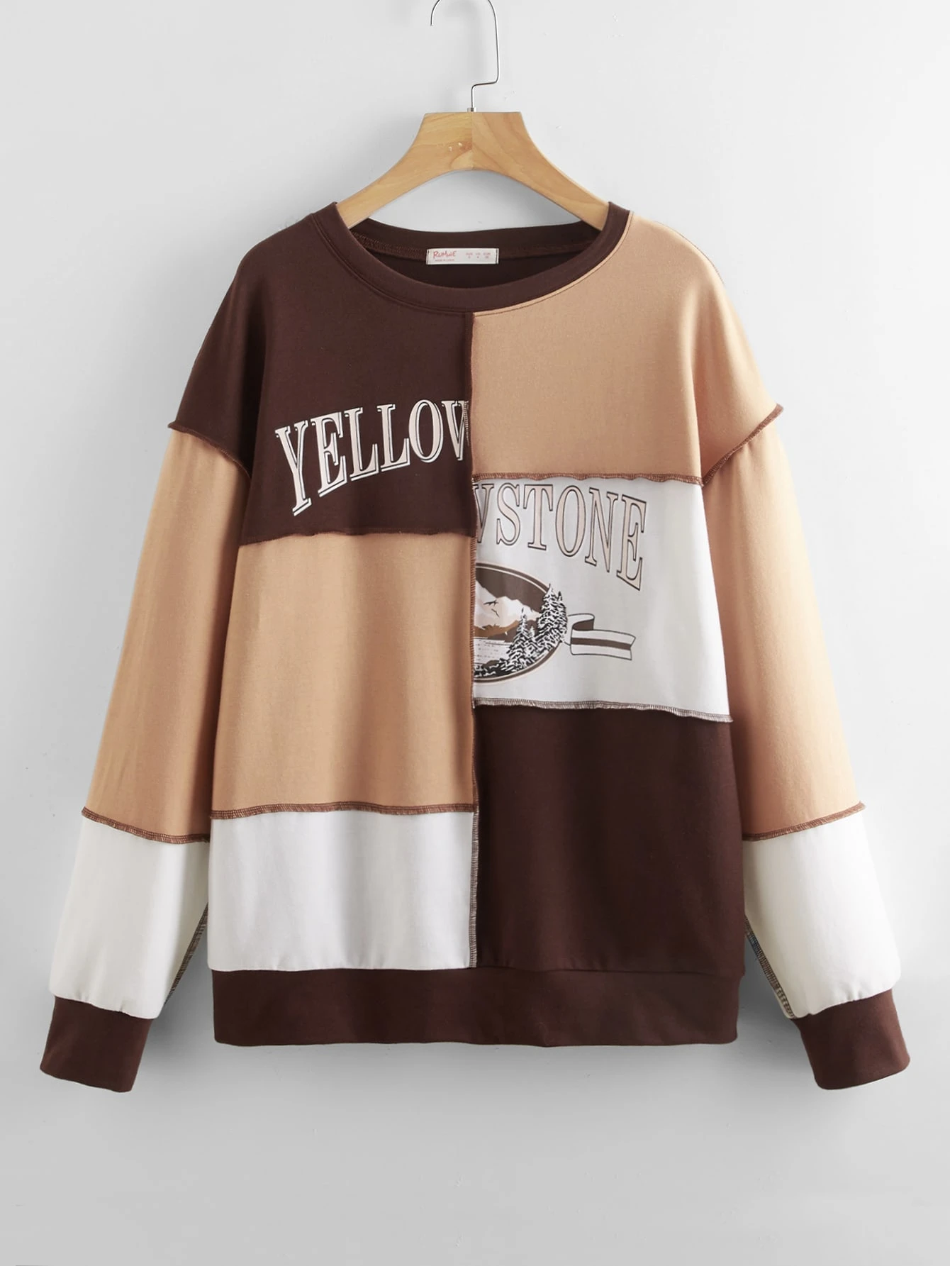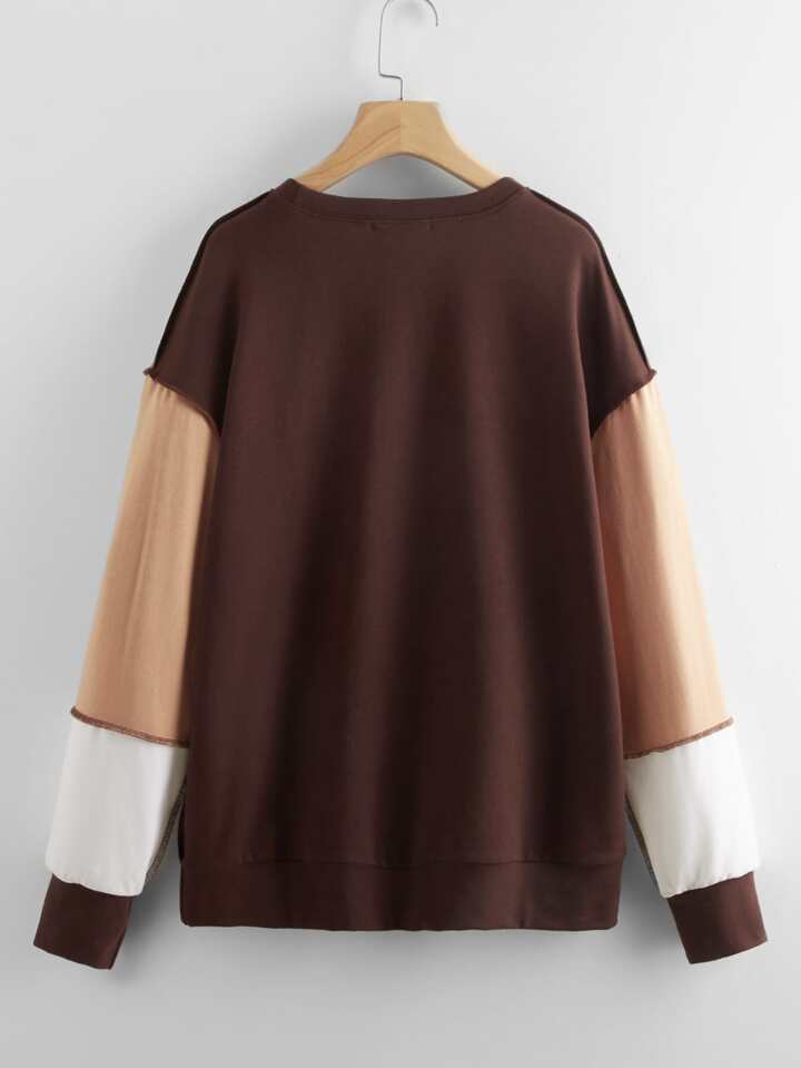 Felpe color block con grafica lettera cucitura