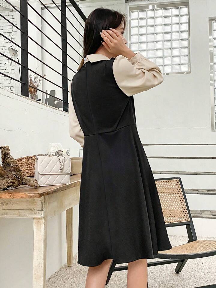 Abito Con Colletto Peter Pan A Blocchi Di Colore E Maniche A Sbuffo