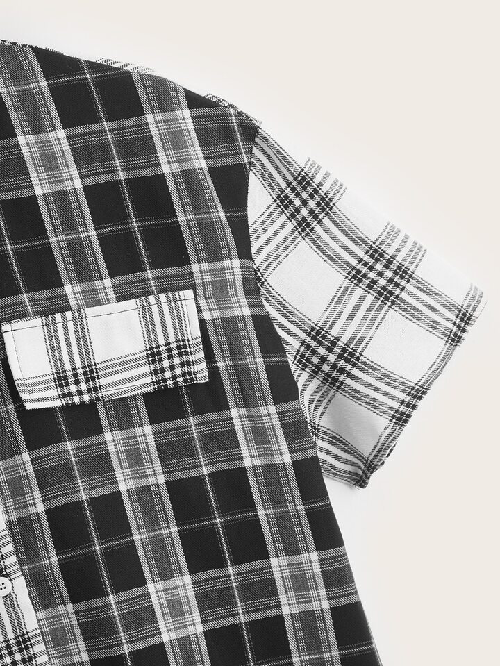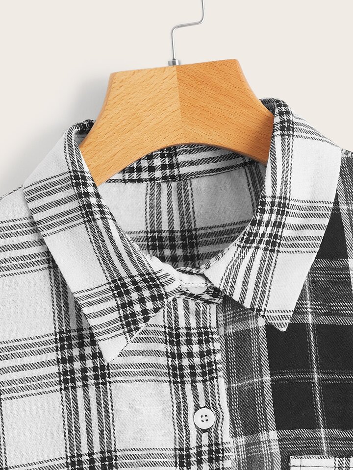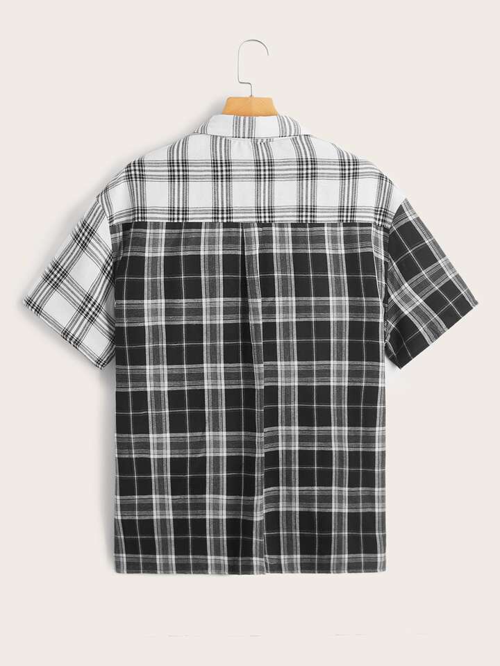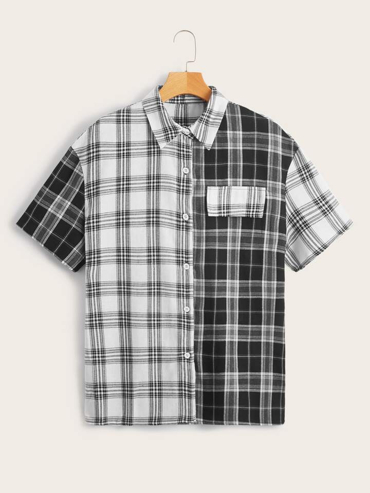 Camicia color block a quadri con bottone frontale