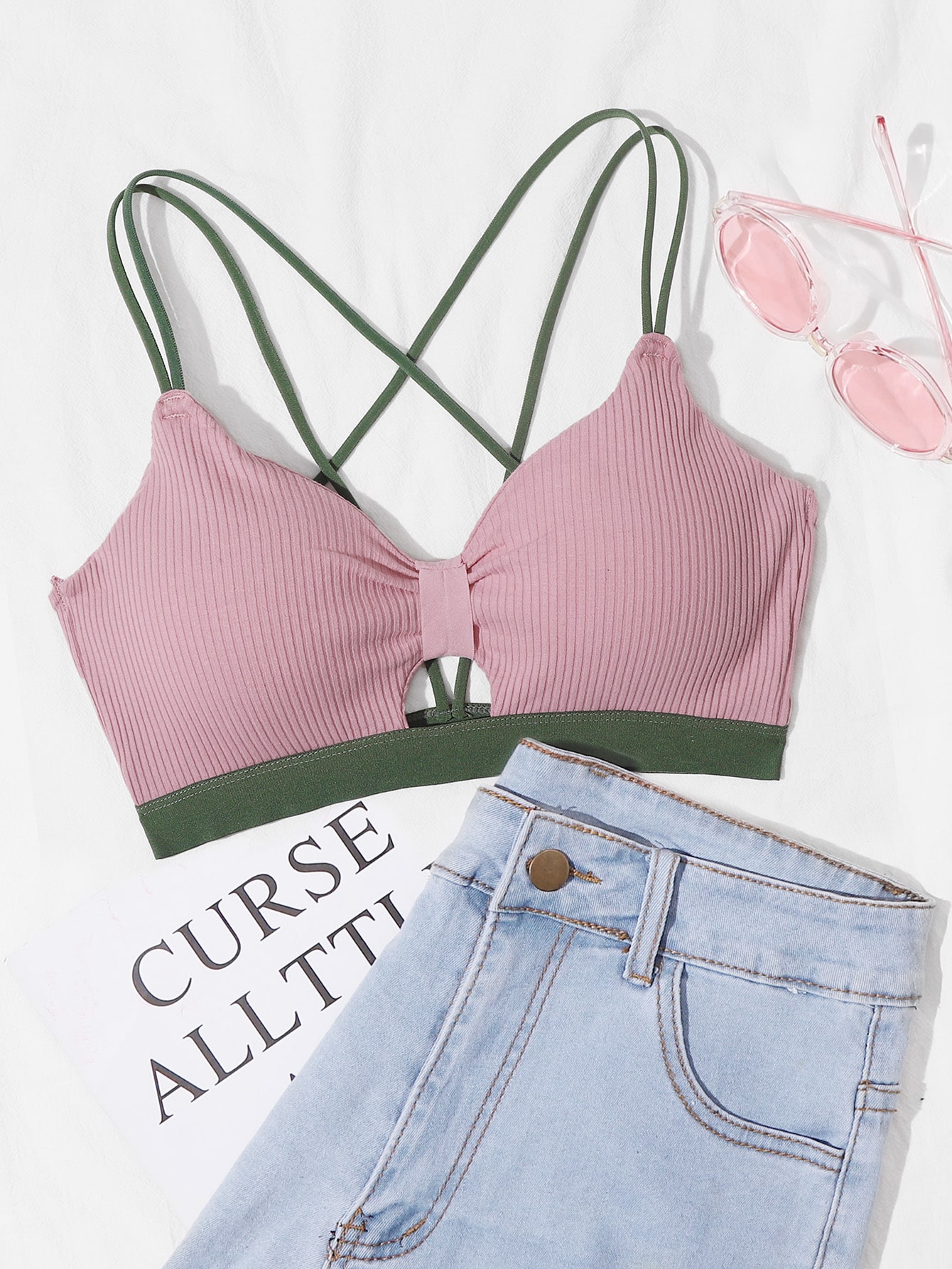 Bralette a costine di blocchi di colore
