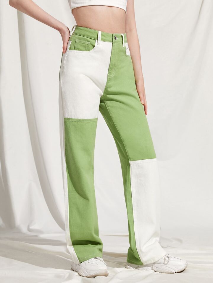 Jeans color block tasca inclinata