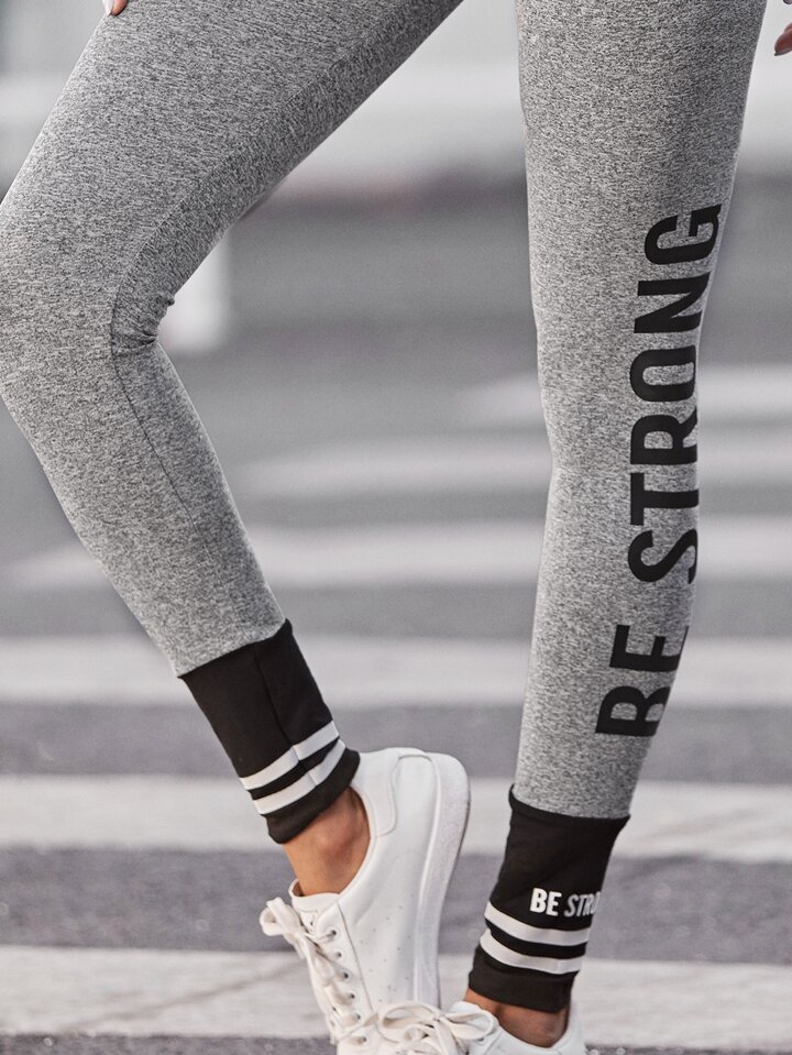 Leggings a righe grafica slogan color block
