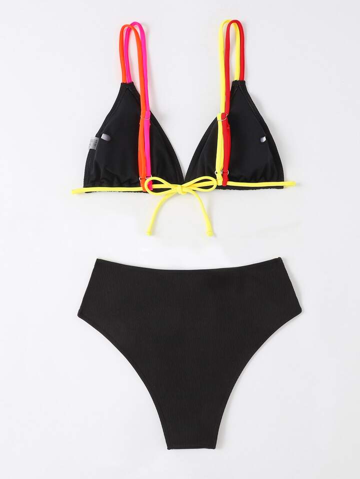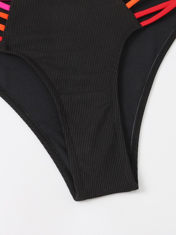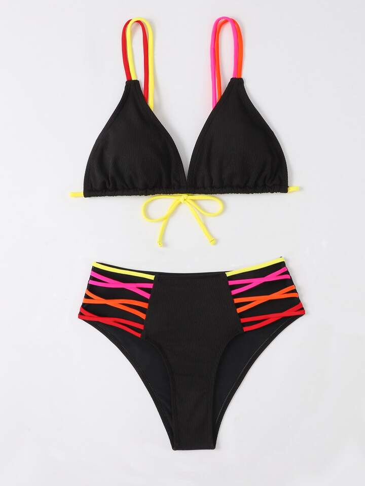 Insieme bikini estivo per la spiaggia con dettagli incrociati colorati a triangolo