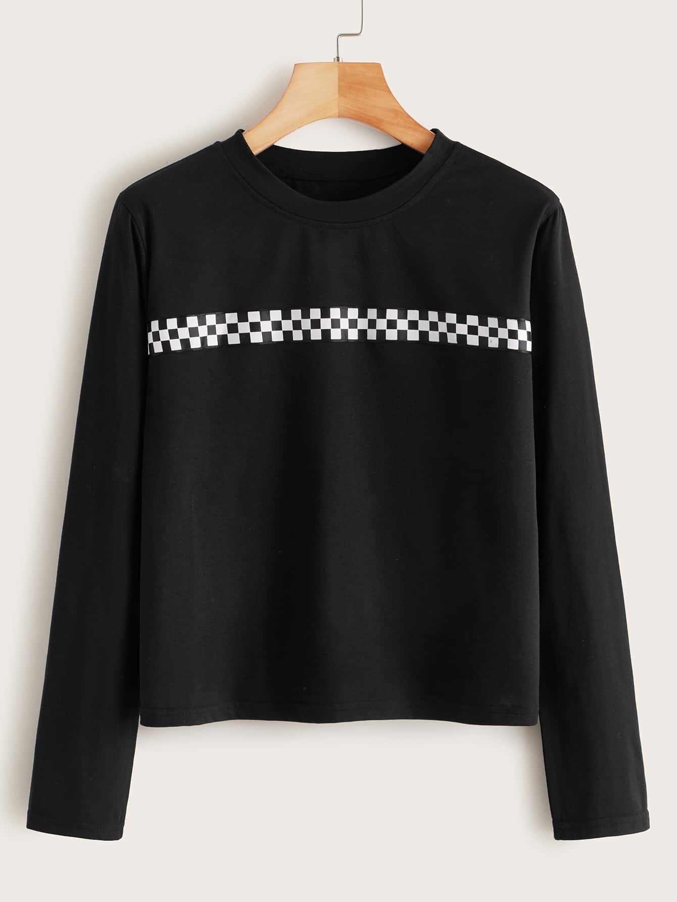 Maglietta a quadri a contrasto con manica lunga