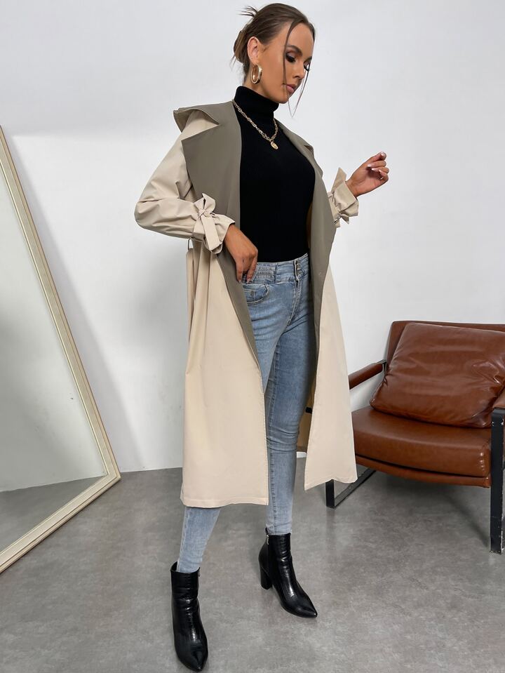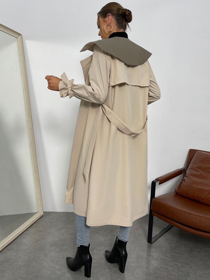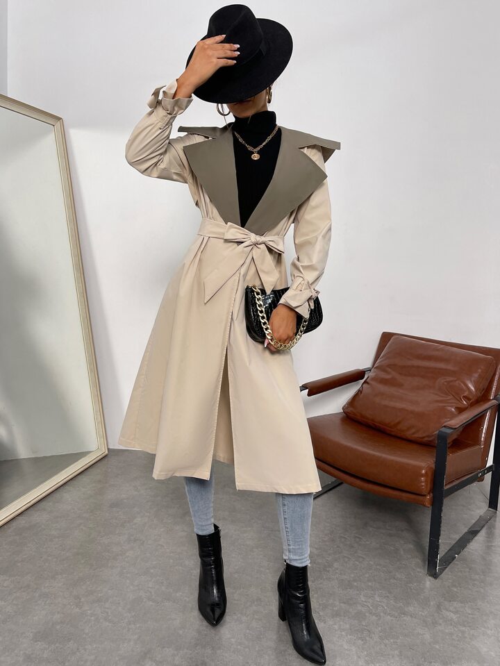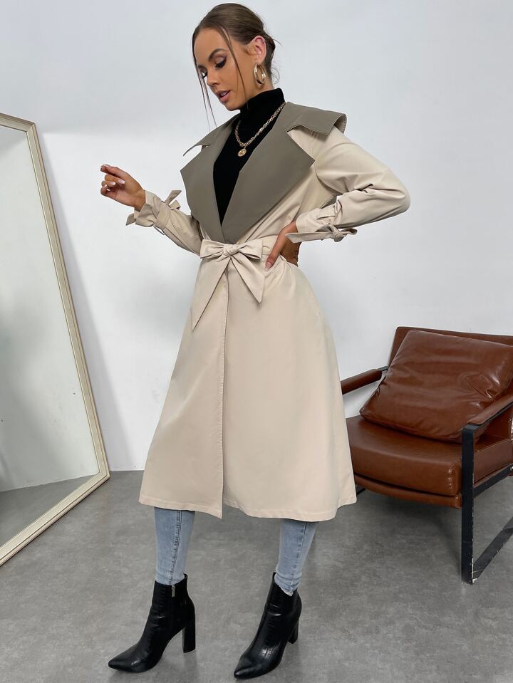 Cappotti a vento colletto a contrasto con nodo con cintura